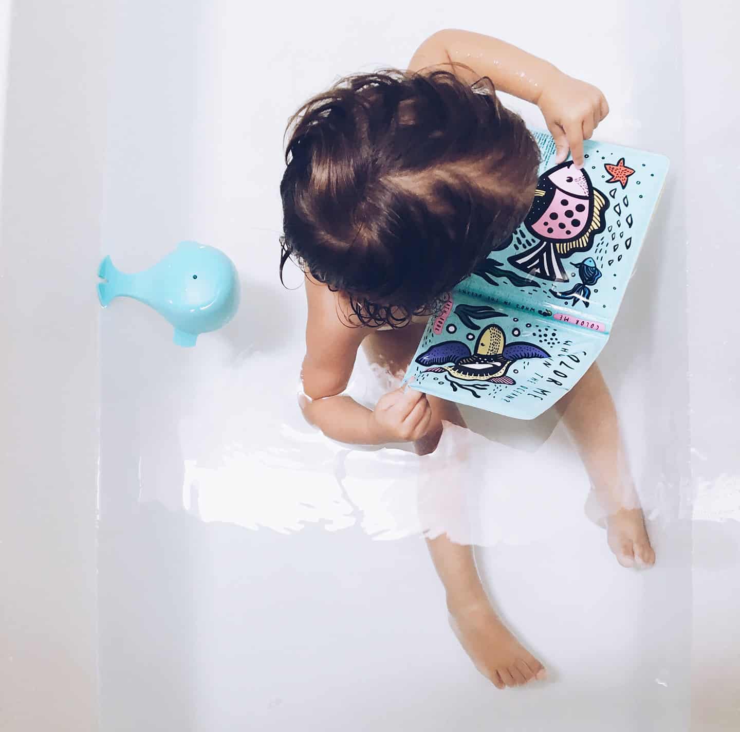 Das magische Badebuch „Color Me: Wer ist im Ozean?“ wechselt im Wasser die Farbe und zeigt Meeresbewohner. Hergestellt aus phthalatfreiem PEVA und TCEP-freiem Schaum, sorgt es für sicheren Badespaß..