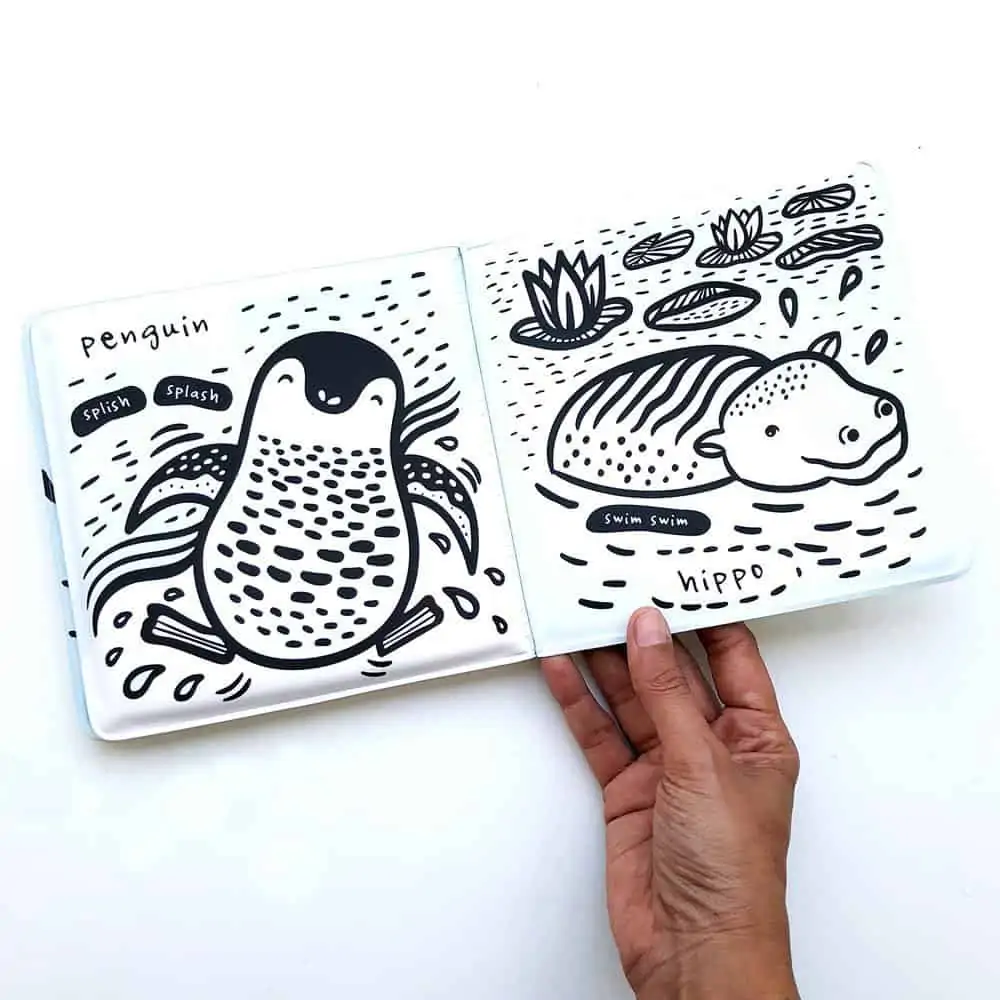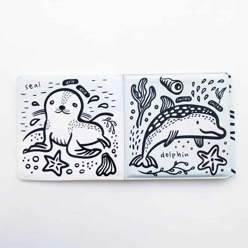 Hübsch illustriertes Buch für die Badewanne zum Thema Wassertiere. Die Bilder ändern unter Wasser ihre Farbe.