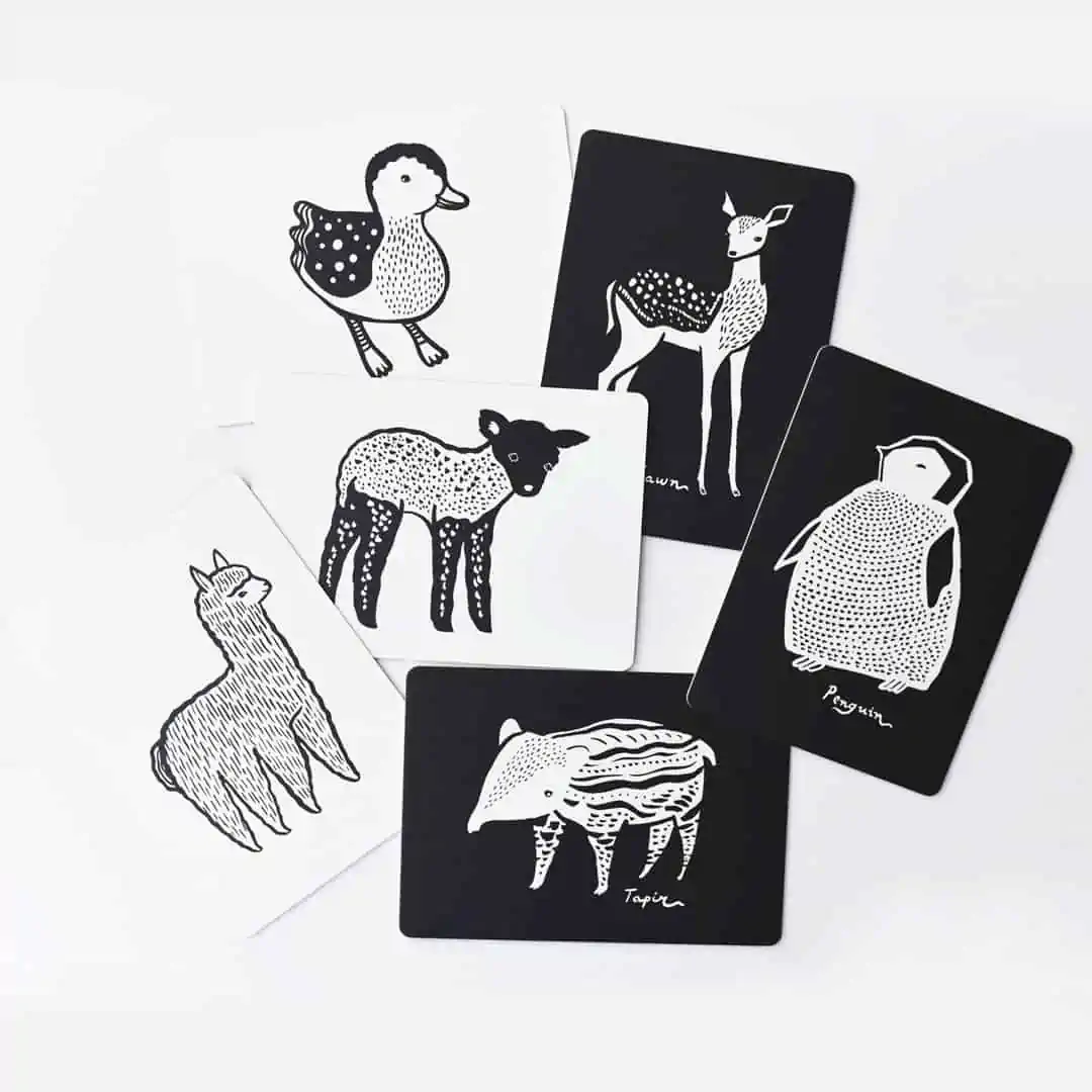 Faszinieren Sie Babys von Anfang an mit den Schwarz-Weiß-Kunstkarten von Wee Gallery. Diese Karten sind darauf ausgerichtet, die kognitive und visuelle Wahrnehmung zu unterstützen, indem sie Babys mit starken Kontrasten und Formen ansprechen, die ihre Aufmerksamkeit erregen. Mit dem Wachstum Ihres Kindes dienen diese Karten nicht nur als visuelle Stimulierung, sondern auch als Lernhilfe für die Erkennung ihrer tierischen Freunde und als Anregung für Bauchliegezeiten.