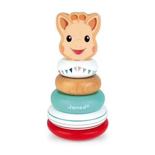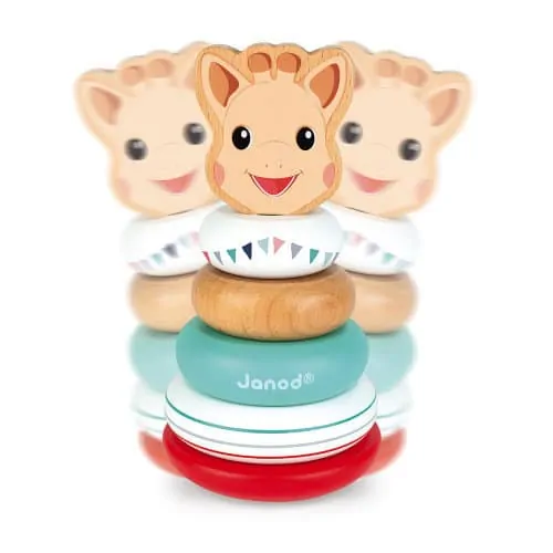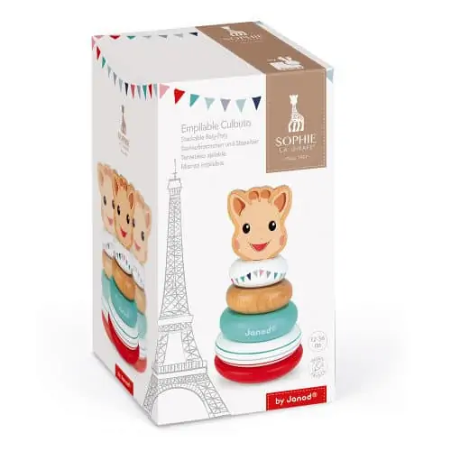 Sophie, die Giraffe, ist in Frankreich seit über 50 Jahren als Spielzeug, das alle Sinne des Babys fördert, ein absoluter Hit. Diese stapelbare Version hat 6 bunten Holzteile, die sich beliebig oft zusammensetzen und auseinandernehmen lassen. Durch die Form der Teile ist die Giraffe gleichzeitig ein Stehaufmännchen.