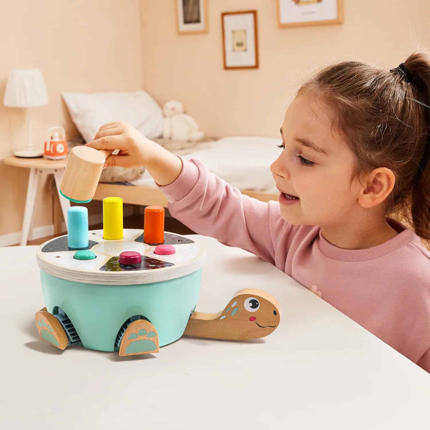 Das TOPBRIGHT Hammer Turtle Klopfspiel fördert spielerisch Feinmotorik, Hand-Augen-Koordination und logisches Denken bei Kleinkindern ab 18 Monaten.