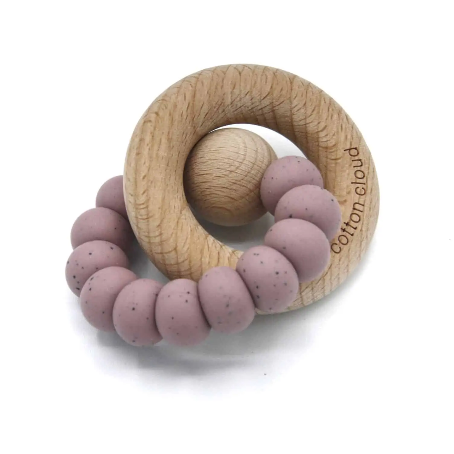 Beißring aus Massivholz mit Silikonperlen. Perfekt geeignet für zahnende Kinder. Design und Produktion in Deutschland.