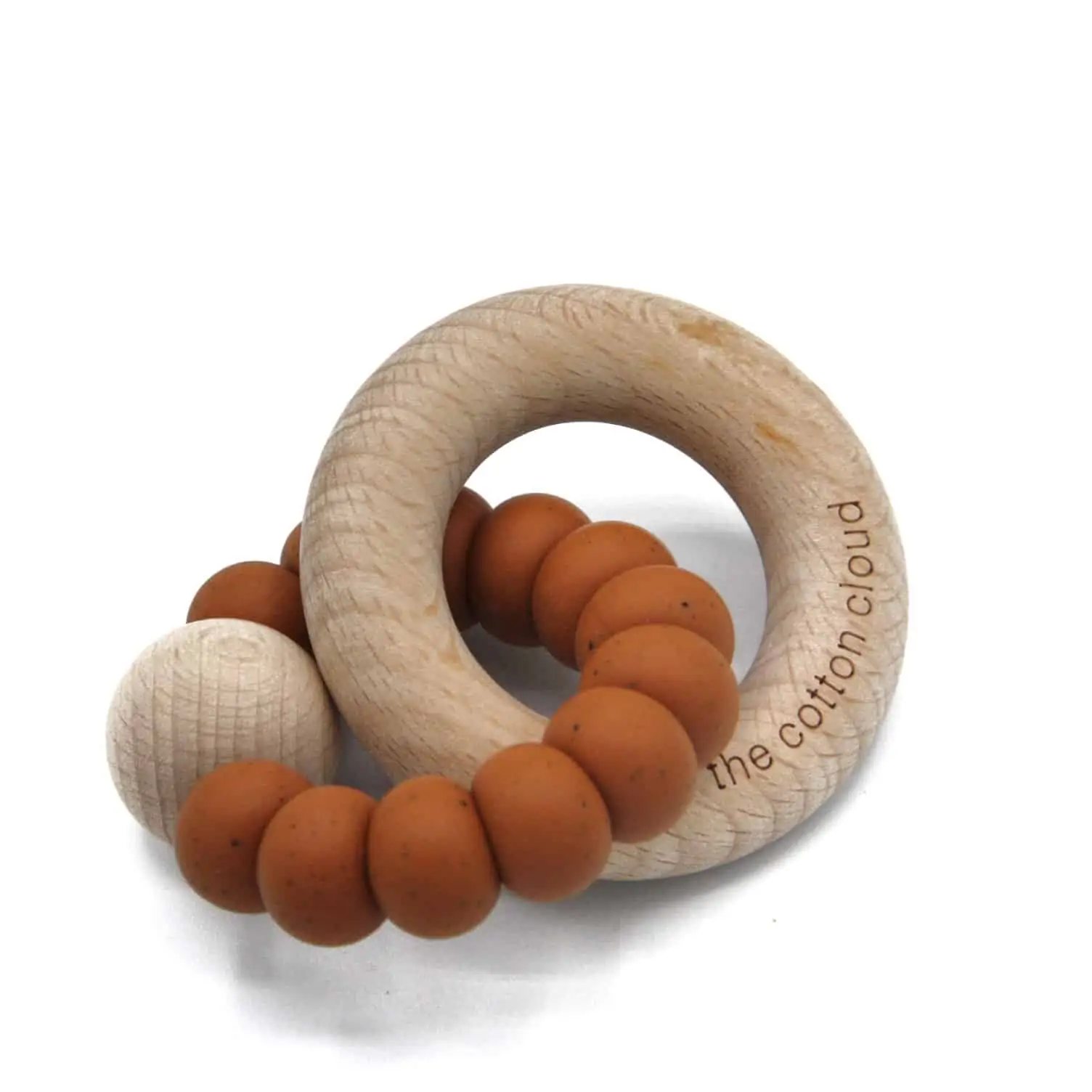 Beißring aus Massivholz mit Silikonperlen. Perfekt geeignet für zahnende Kinder. Design und Produktion in Deutschland.