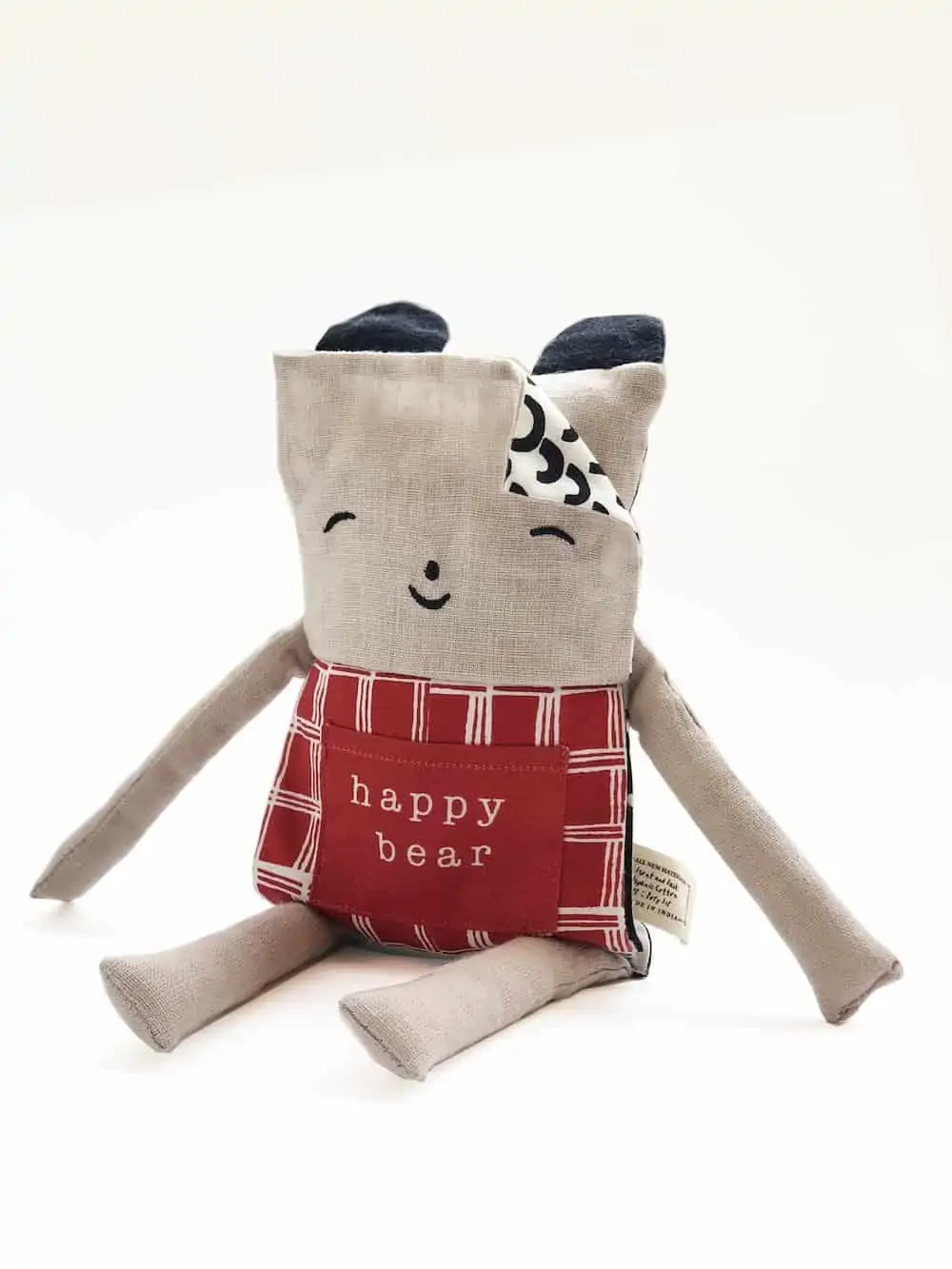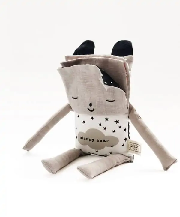 Stofftier aus 100% organischer Baumwolle gefüllt mit Polyester. Flippe den Bären, um sein Outfit passend zur Tageszeit zu ändern. Perfekt zum Erlernen täglicher Abläufe.