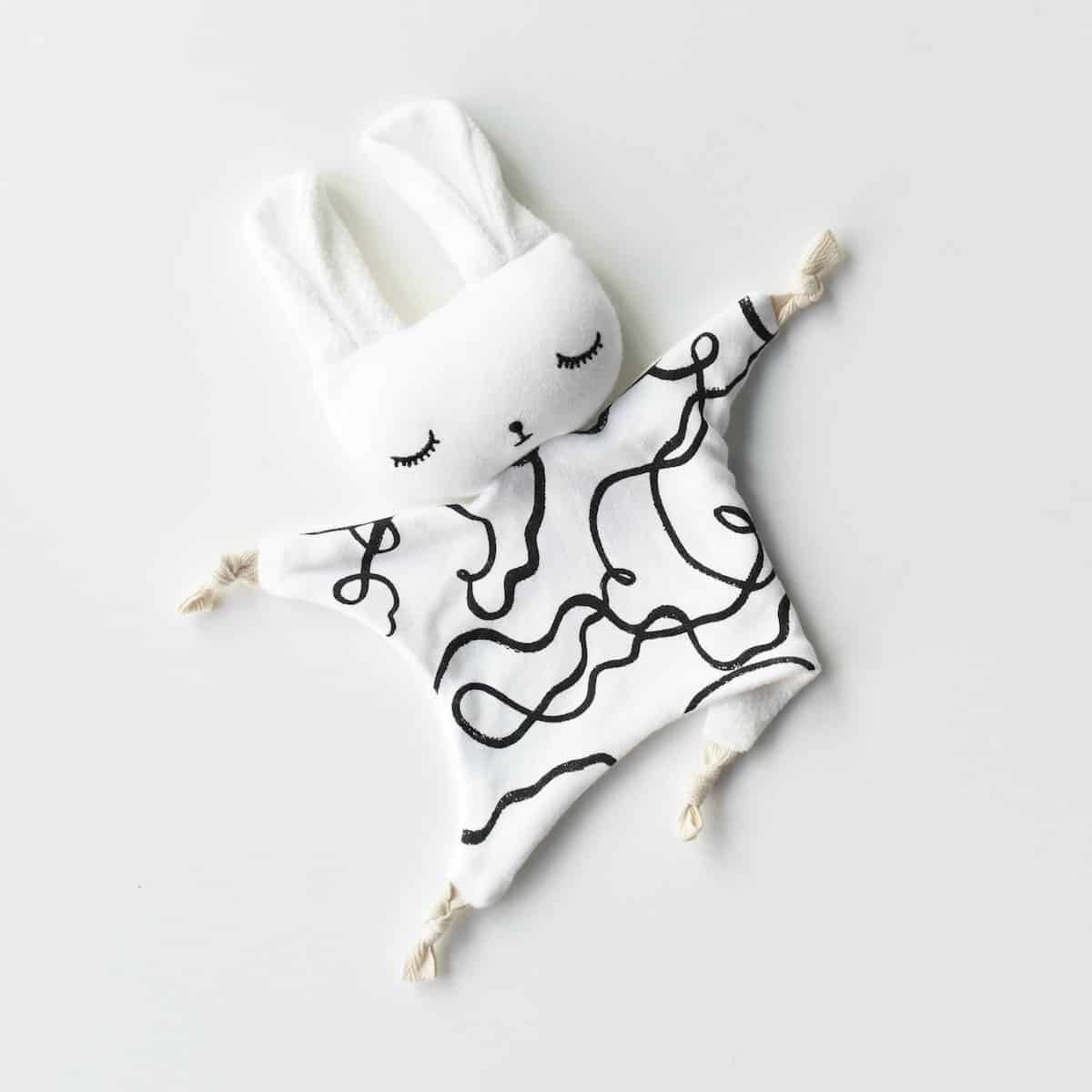 Baby Kuscheltuch aus 100% organischer Baumwolle in Form eines Hasen. Ab Geburt verwendbar. Maschinenwaschbar bei 30 Grad.