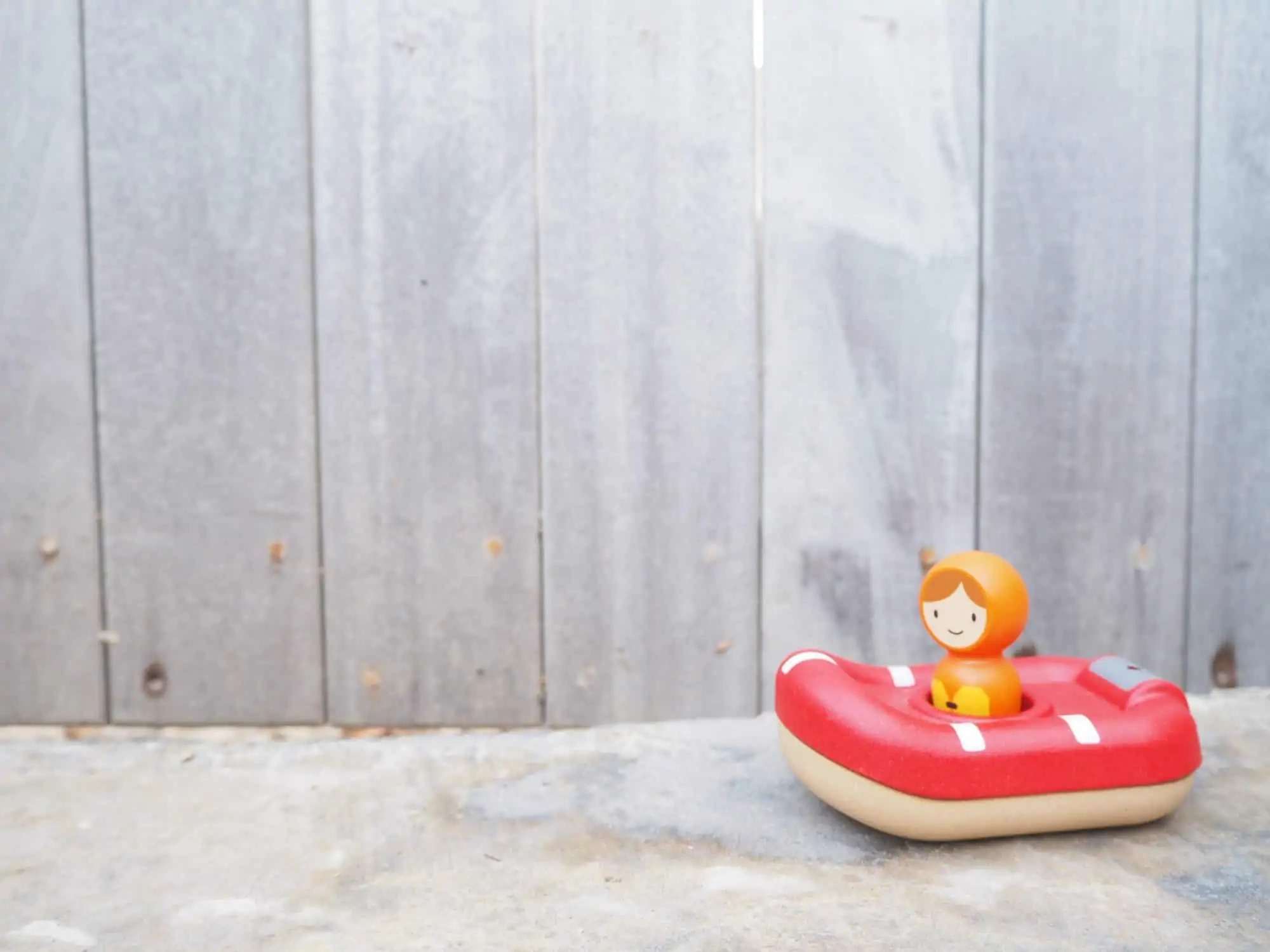 Badespielzeug in Form eines Küstenwachen-Rettungsboots. Inklusive entnehmbarer Pilotenfigur. Nachhaltig produziert aus 100% Recycling-Sägemehl.