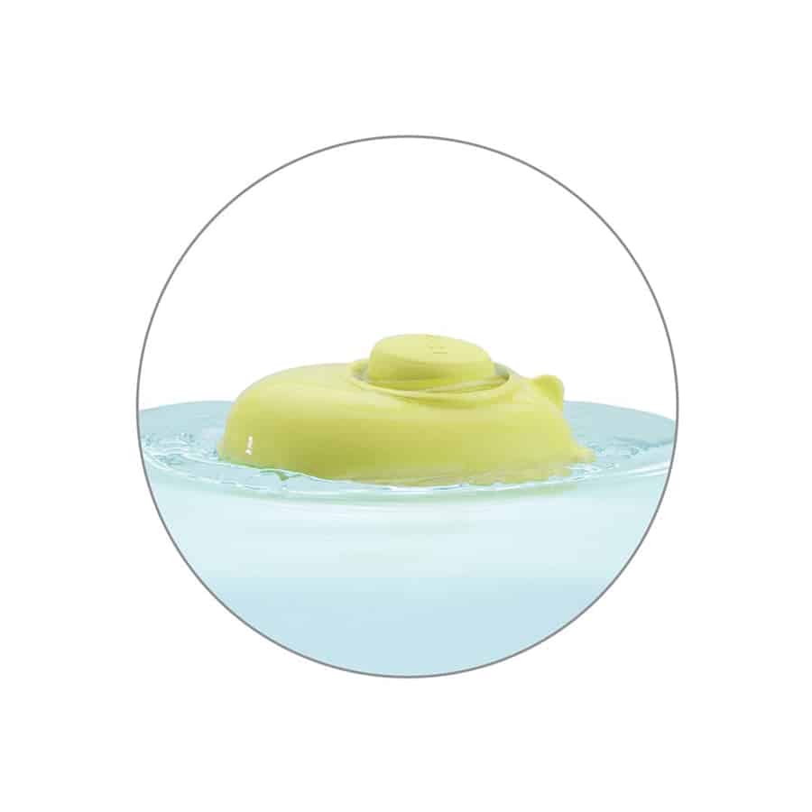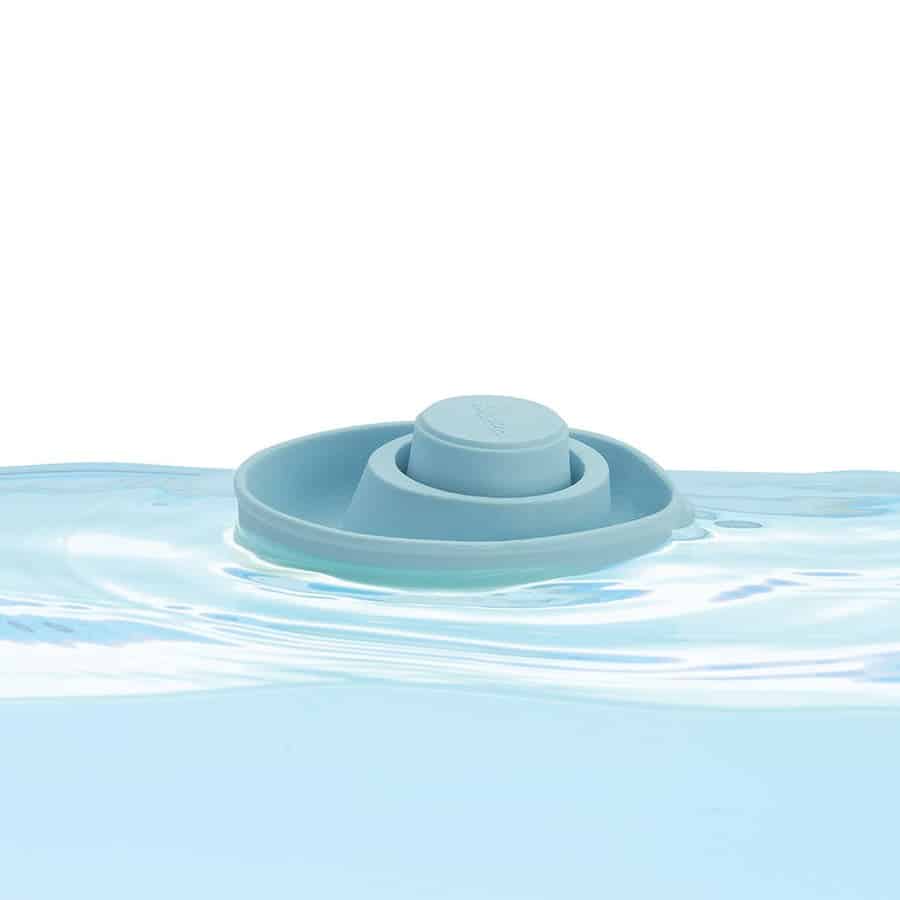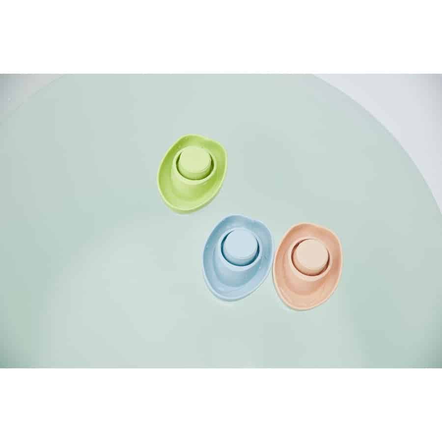 Badespielzeug in Form eines Schlauchboots. Kann zu einem U-Boot umgebaut werden. Nachhaltig produziert aus 100% Recycling-Sägemehl.