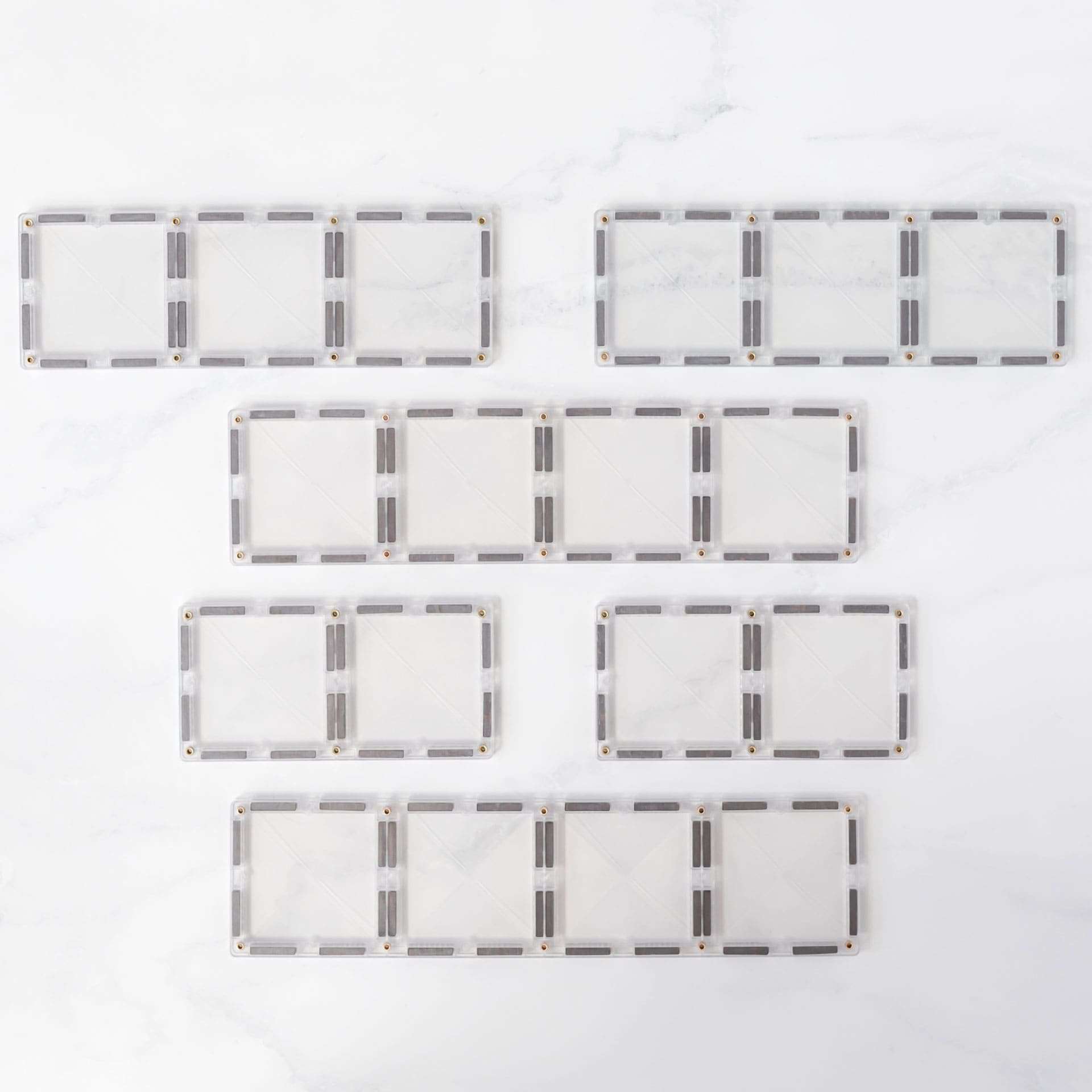 Verbessern Sie Ihr Connetix-Spiel mit den transparenten Clear Rectangles. Diese magnetischen Fliesen in drei verschiedenen Rechteckgrößen bieten neue, kreative Spielmöglichkeiten.
