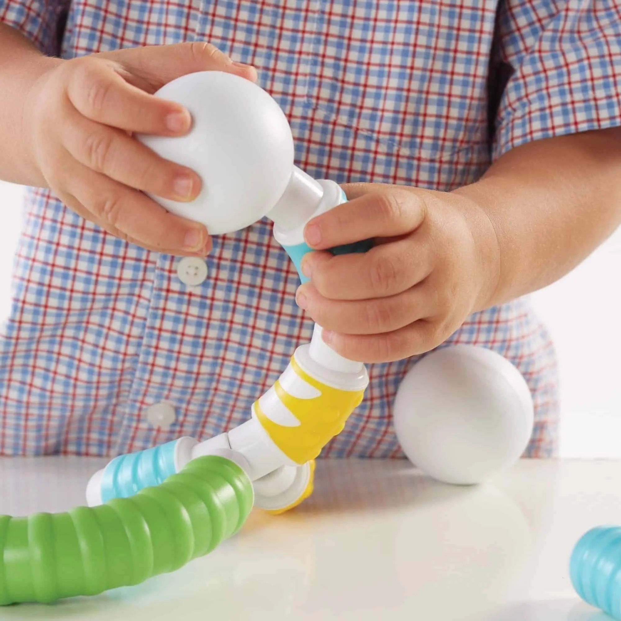 - Fein- & Grobmotorik: zielgenaues Stecken, Stabilisieren, Bauen