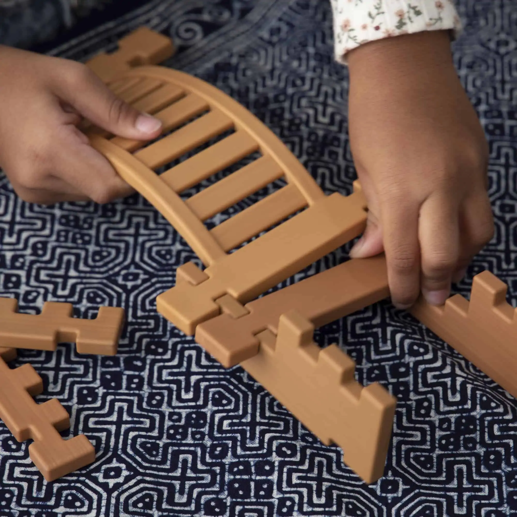 Die Tabletop Notch Blocks – Eastern bringen authentisch inspirierte Architektur-Ideen auf den Tisch: Kinder ab 3 Jahren stecken stabile Bauwerke dank Kerben sicher zusammen, planen Plattformen und Übergänge mit Brücken & Leitern und ergänzen auf Wunsch Loose Parts aus der Natur. Das widerstandsfähige TPE macht das Set innen wie außen einsetzbar – sogar im Spiel mit Wasser, Sand oder Erde. Die 10 doppelseitigen Inspirationskarten liefern Bildimpulse zu östlicher Architektur und fördern Gespräche über Formen, Funktionen und Bauweisen. Erhältlich als 87- oder 132-teiliges Set für Zuhause, Kita und Klassenraum.