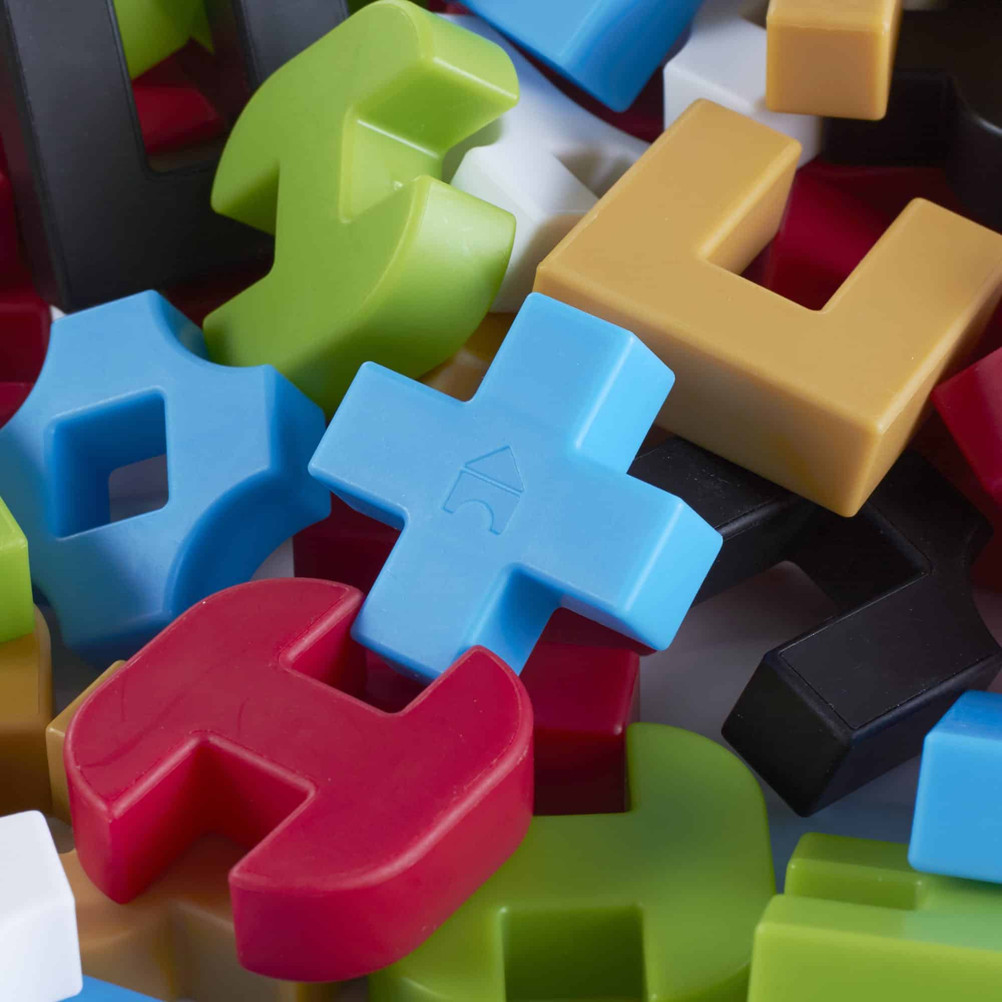 IO Blocks® Education Set mit 1000 Bausteinen in 12 Formen und 6 Farben. Friction-Fit (kein Magnet), soft-touch, offen für endlose Bauideen – perfekt für Kinder & Teens & Gruppen.