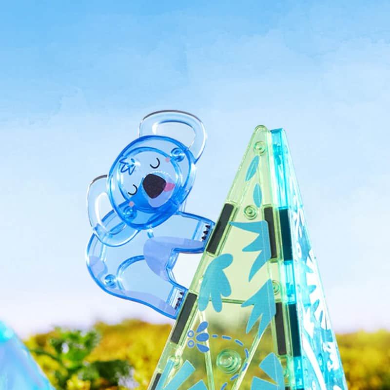Die Wonderful Forest Tiles kombinieren stabile Magnetkerne mit lichtdurchlässigem MABS. Kinder stapeln, verbinden und erzählen mit Waldtieren kreative Geschichten.