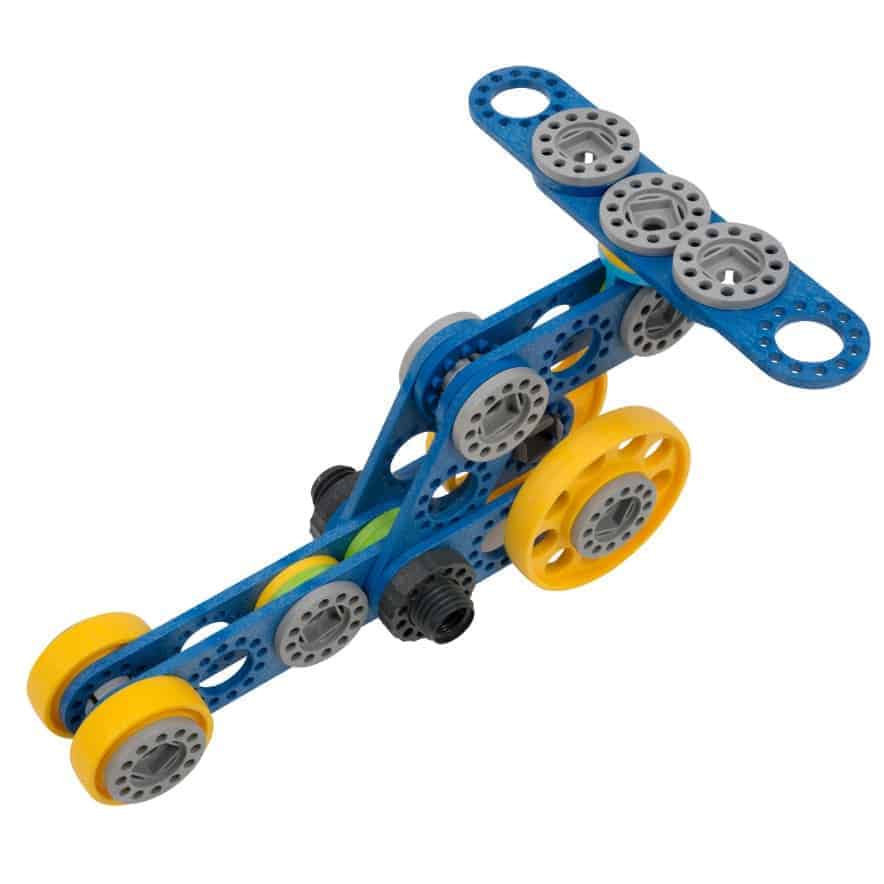 Alle Teile können vollständig ohne Werkzeug verbaut werden. Für den Fall, dass mal etwas zu fest sitzt, kann man es mit dem enthaltenen Deconstructor lösen. Alle Volk’s Baukästen können beliebig untereinander kombiniert werden, um die Baumöglichkeiten noch zu erweitern.
