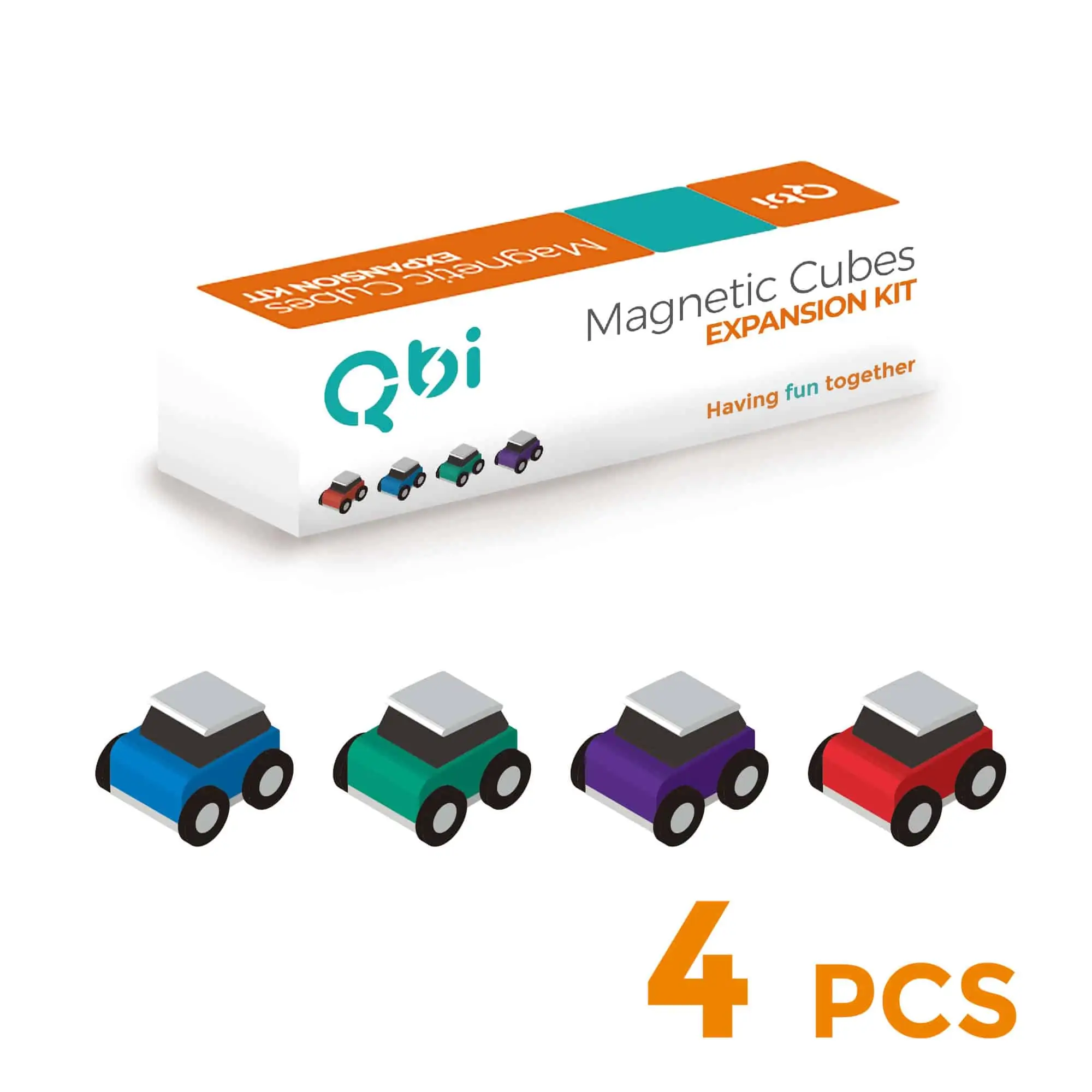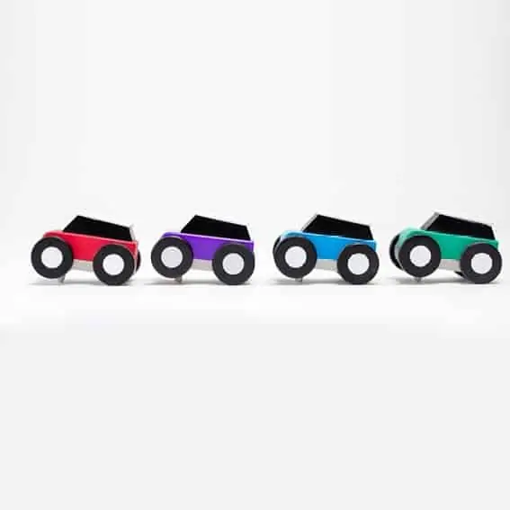 Erweitere deine Magnetische Autobahn von Qbitoy mit 4 bunten Autos.