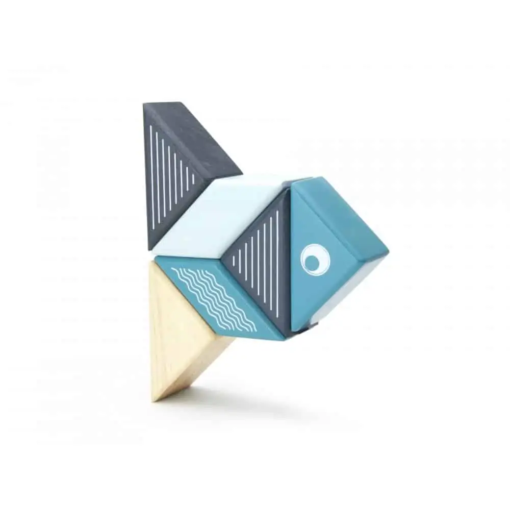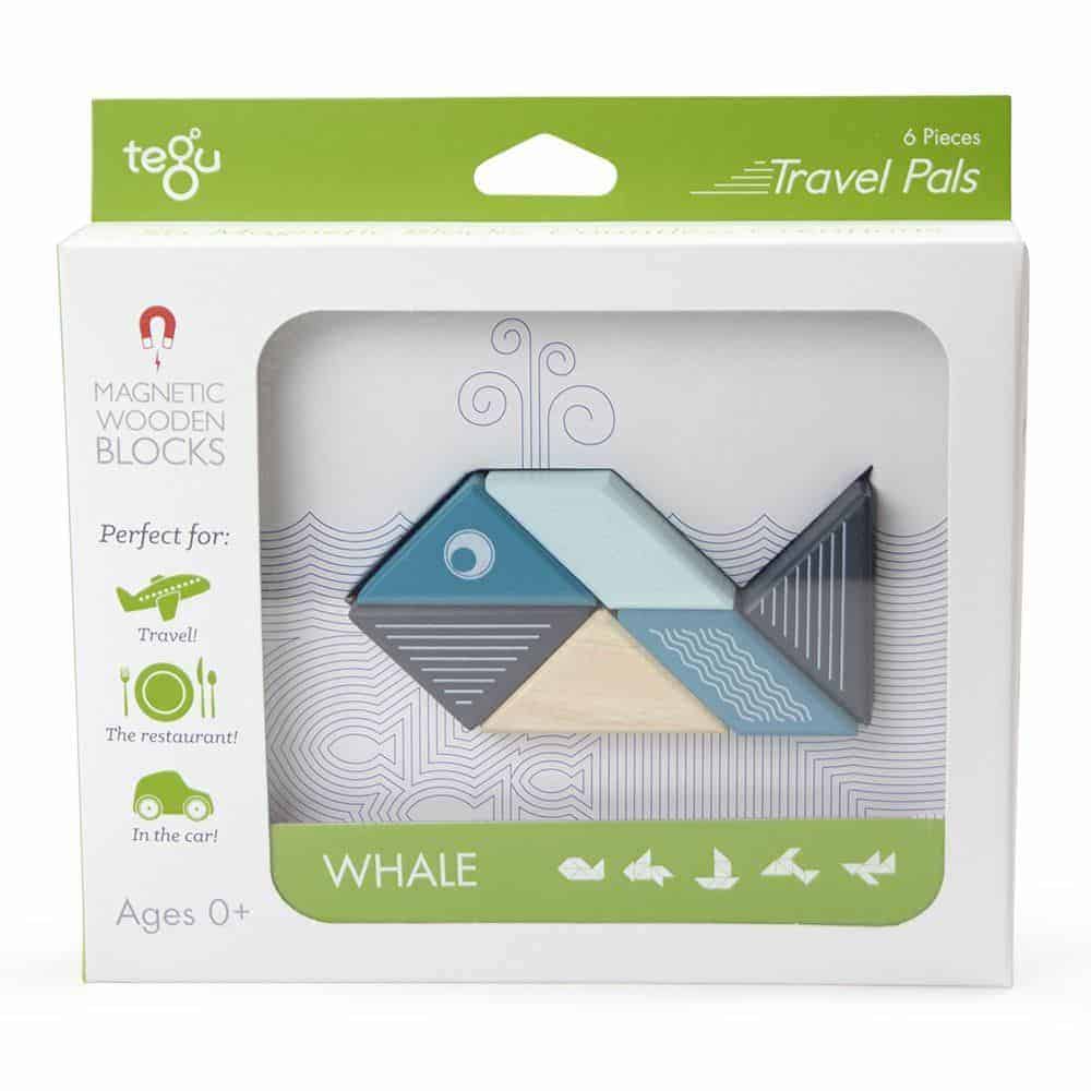 Das Set „Whale“ besteht aus sechs Teilen und gleicht einem Wal, aber nur solange, bis man ihn in über 49 verschiedene Gestalten umbaut. Die Teile können mit allen anderen tegu Blöcken kombiniert werden.