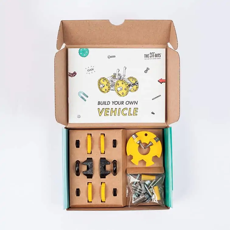 Die Offbits Fahrzeugkits enthalten ein detailliertes Handbuch, ein SuperTool™ und einen einzigartigen Code, der Zugang zur Offbits-Online-Community gewährt.