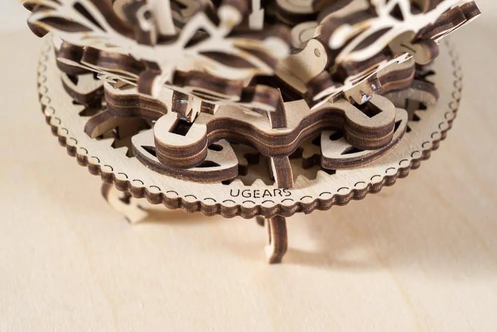 Mit der mechanischen Blume präsentiert Ugears eine innovative Geschenkidee für Ihre Liebsten. Die Blume öffnet sich auf Knopfdruck und enthüllt drehend eine wunderschöne Ballerina, einen Glücksbaum oder Ihr Lieblingsobjekt.