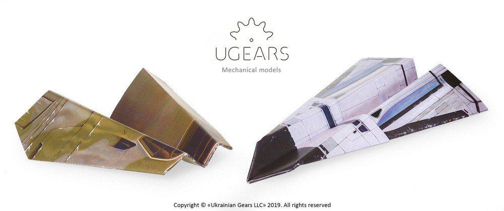 Der Bausatz umfasst darüber hinaus ein Segelflugzeug und zwei Papierflugzeuge, die Sie zusammen mit den von Ihnen selbst entworfenen Flugzeugen mit dem Flugzeugstarter fliegen lassen können. Je nachdem, wie Sie die Winkel der Flügel und andere Elemente eines Flugzeugs vor seinem Start in den Himmel einstellen, können Sie es Loopings, Fassrollen, hochgezogene Fahrtkurven und andere lustige Manöver ausführen lassen. Wenn Sie Ihr eigenes Flugzeug bauen möchten, empfehlen die Designer von Ugears die Verwendung von möglichst leichtem Material: Papier, Karton, Balsaholz, etc.