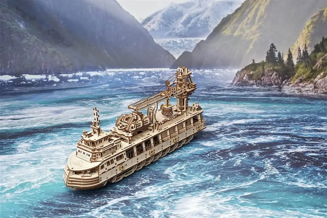 UGEARS Forschungsschiff – mechanischer Holzbausatz