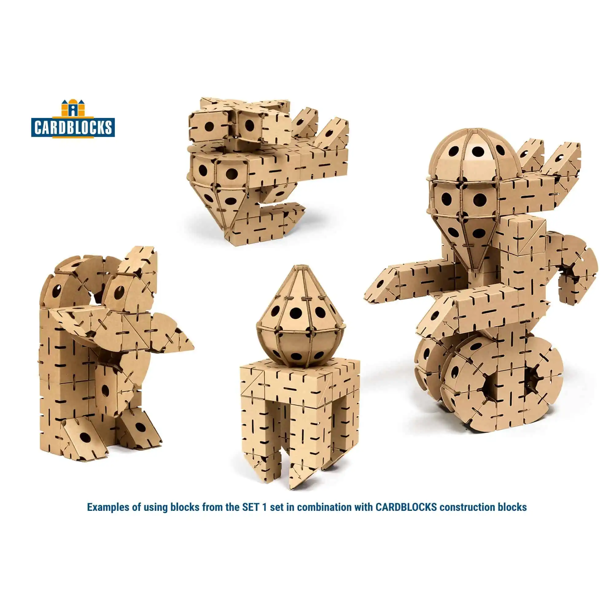 Jedes Set von Cardblocks fördert nicht nur die Feinmotorik und räumliche Vorstellungskraft, sondern auch das Verständnis für geometrische Grundlagen und Strukturen. Die simplen, aber genialen Kartenblöcke sind ein hervorragendes pädagogisches Werkzeug, das spielerisches Lernen und kreativen Ausdruck unterstützt. Sie sind aus nachhaltigen Materialien hergestellt und bieten eine umweltfreundliche Alternative zu herkömmlichen Kunststoffbausteinen.