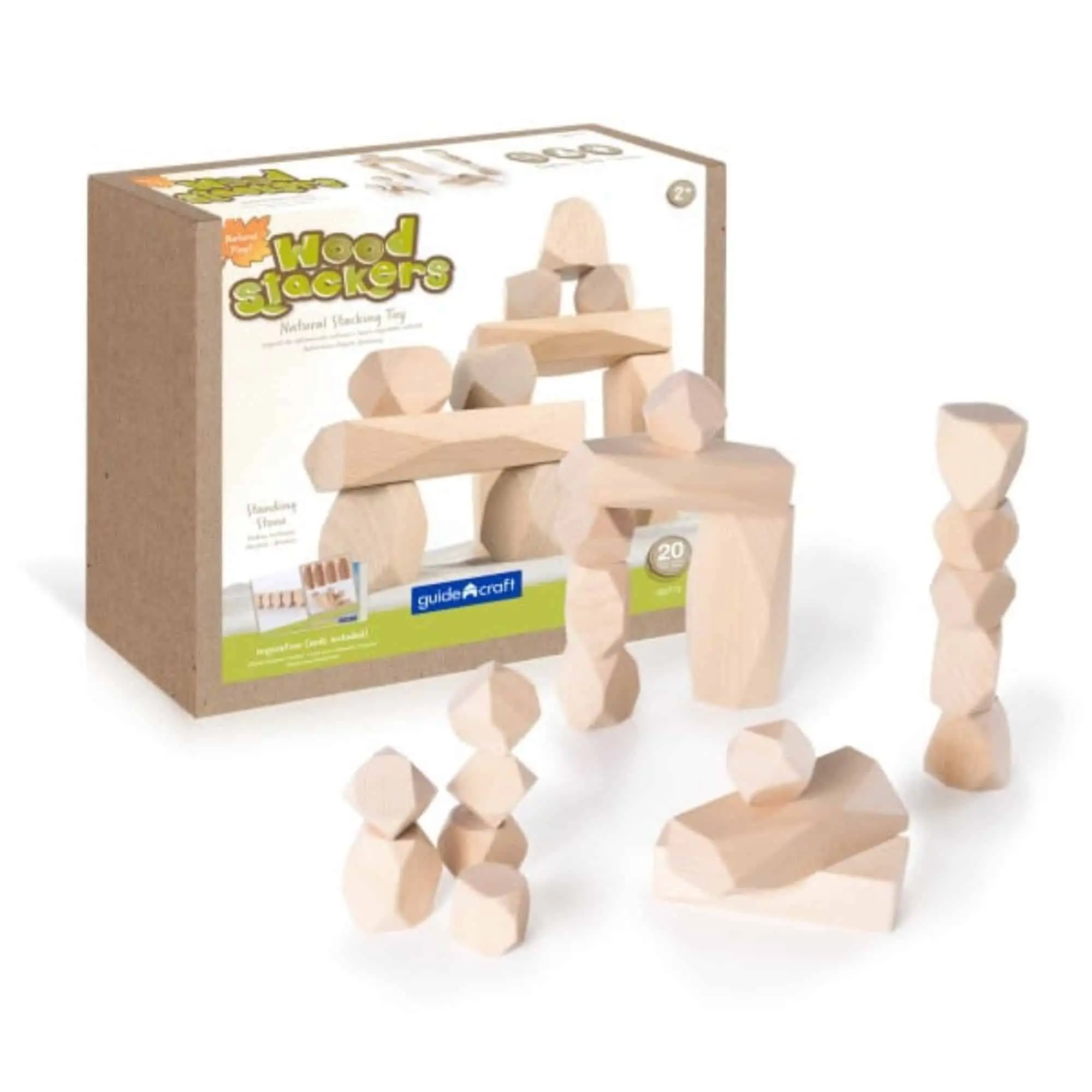 Guidecraft Wood Stackers Standing Stones – 20 Holz-Steine zum Stapeln