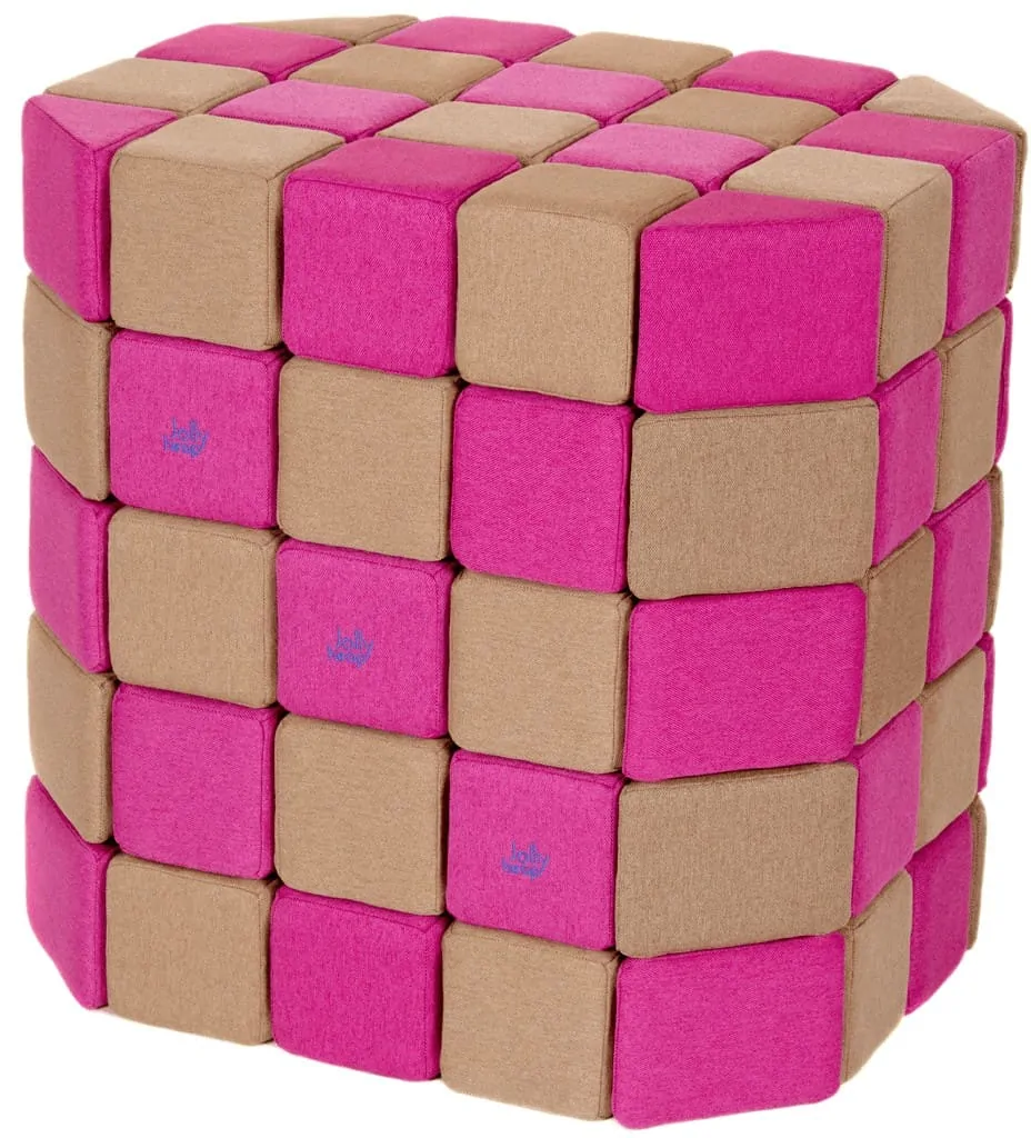 Das Basic Set 100 enthält 70 Würfel und 30 Dreiecke aus Stoff & Schaum mit integrierten Magneten. Leises, stabiles Bauen in großen Formaten – perfekt für Kita, Vorschule & Indoor-Spielbereiche.
