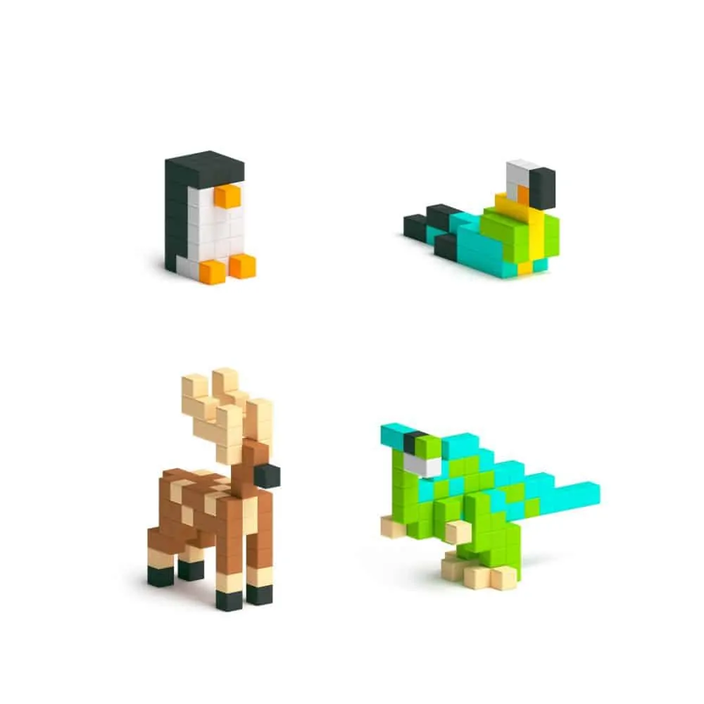 Weil aus Pixeln im Handumdrehen 3D-Figuren werden: Die Bausteine verbinden sich zuverlässig, bleiben dennoch flexibel im Umbau und wachsen mit den Ideen der Kinder. Das Wechselspiel aus Kreativität und Struktur hält dauerhaft bei Laune – ideal für freie Projekte und geführte Bauaufgaben.