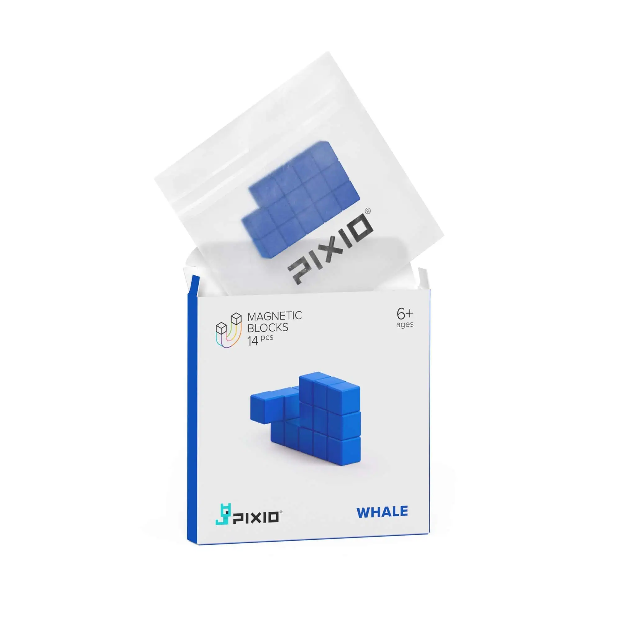 PIXIO Blue Whale – 14 magnetische Bausteine – Color Series – kreatives Pixel-Bauen für Kinder & Erwachsene