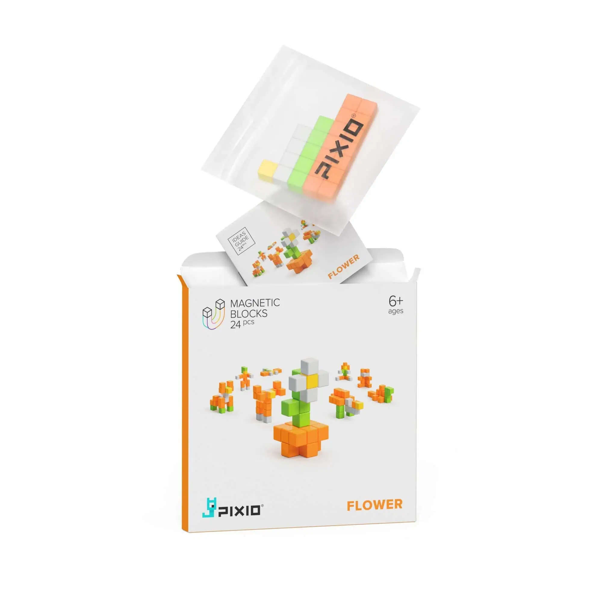 Kleines PIXIO-Set Flower mit magnetischen Bausteinen – ideal für Figuren & Mini-Szenen im Pixel-Stil. Kompatibel mit allen PIXIO Sets; Inspirationen in der App für Kinder & Erwachsene.