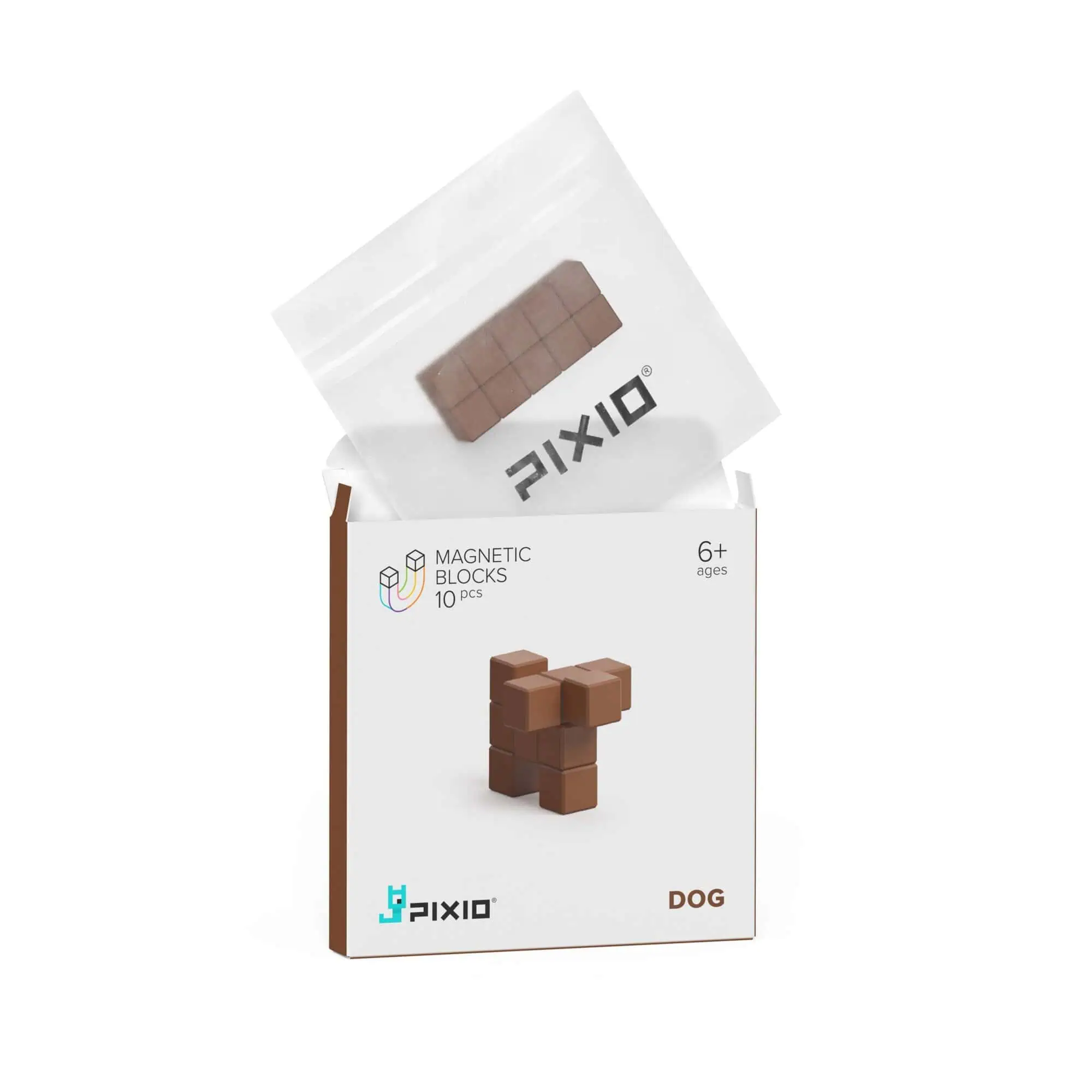 10 magnetische PIXIO-Bausteine in Braun – baue einen Pixel-Hund und viele weitere Mini-Modelle. Kompatibel mit allen PIXIO Sets; App-Ideen für Kinder & Erwachsene.
