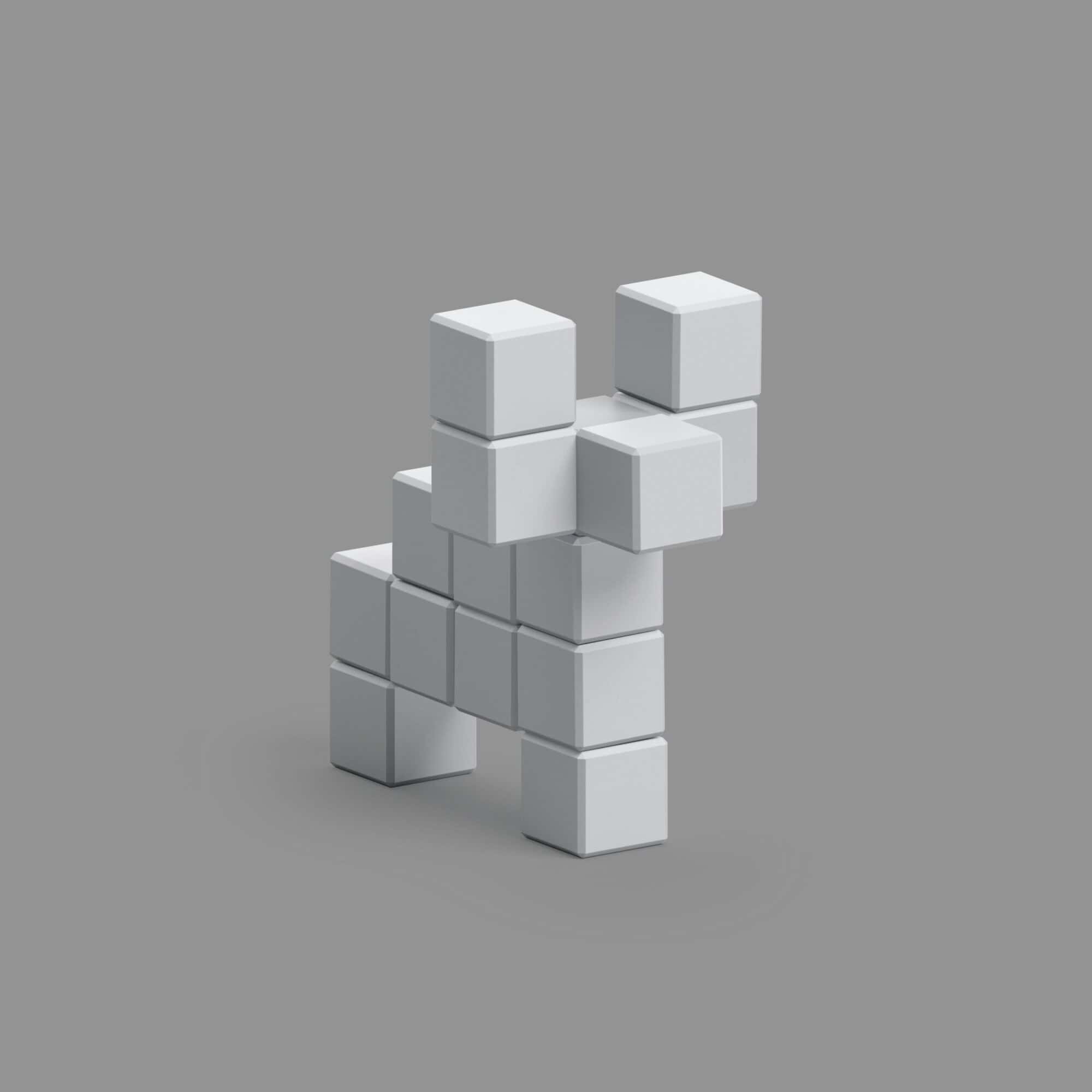 Gray Cow zeigt, wie aus einer Farbe starke Figuren entstehen können. Die 8-mm-Würfel verbinden sich dank integrierter Magnete stabil aus jeder Richtung – für saubere Kanten, glatte Flächen und stabile 3D-Modelle. Aus 15 grauen Blöcken entstehen Kuh, Tiere, Icons und kleine Objekte im zeitlosen Monochrom-Look.