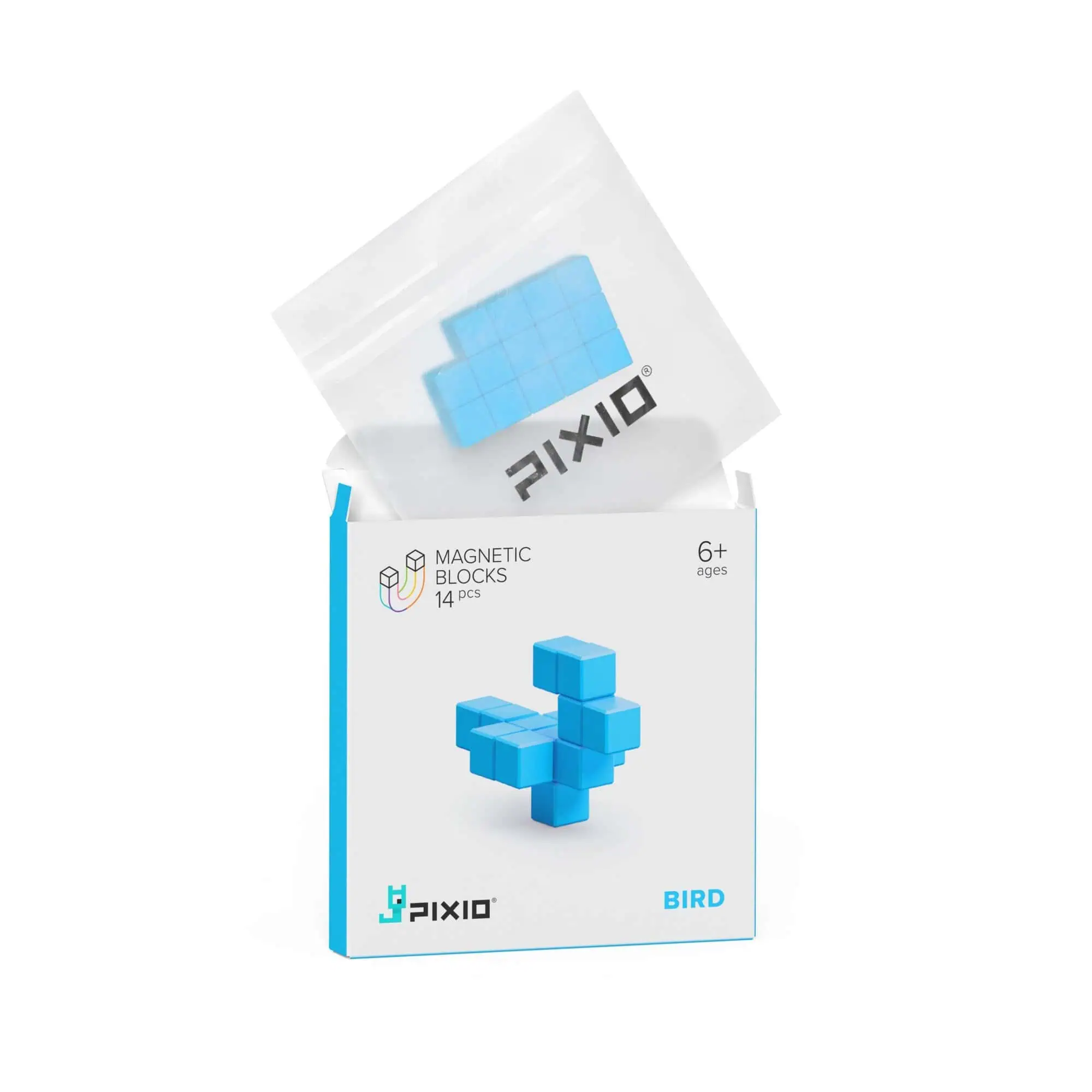 14 magnetische PIXIO-Bausteine in Hellblau – baue einen Mini-Vogel oder andere Pixel-Figuren. Kompatibel mit allen PIXIO Sets; App-Inspirationen für Kinder & Erwachsene.