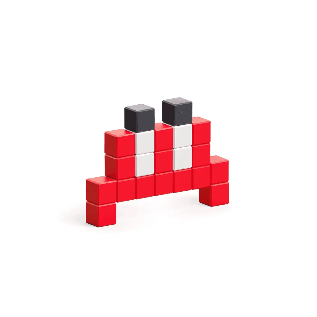 21 magnetische PIXIO-Bausteine in Rot, Weiß und Schwarz – baue Crabb, das Mini-Monster, und viele weitere Pixel-Figuren. Kompatibel mit allen PIXIO Sets; App-Inspirationen für Kinder & Erwachsene.
