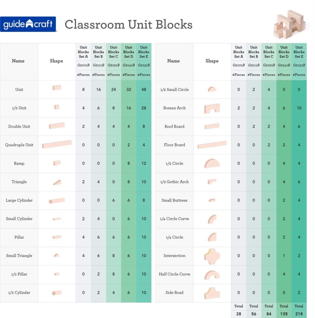 Mit den Unit Block Sets hat Guidecraft das beliebte Konzept der Unit Blocks (mehr dazu unten) aufgegriffen, variiert und erweitert. Viele verschiedene Formen wie beispielsweise Dreieck, Bogen, oder Zylinder sind in den Sets vertreten und eröffnen dir noch mehr Baumöglichkeiten. Während des Spielens entwickeln sich deine motorischen Fähigkeiten, deine räumliche Wahrnehmung sowie deine Kreativität und Konzentration.