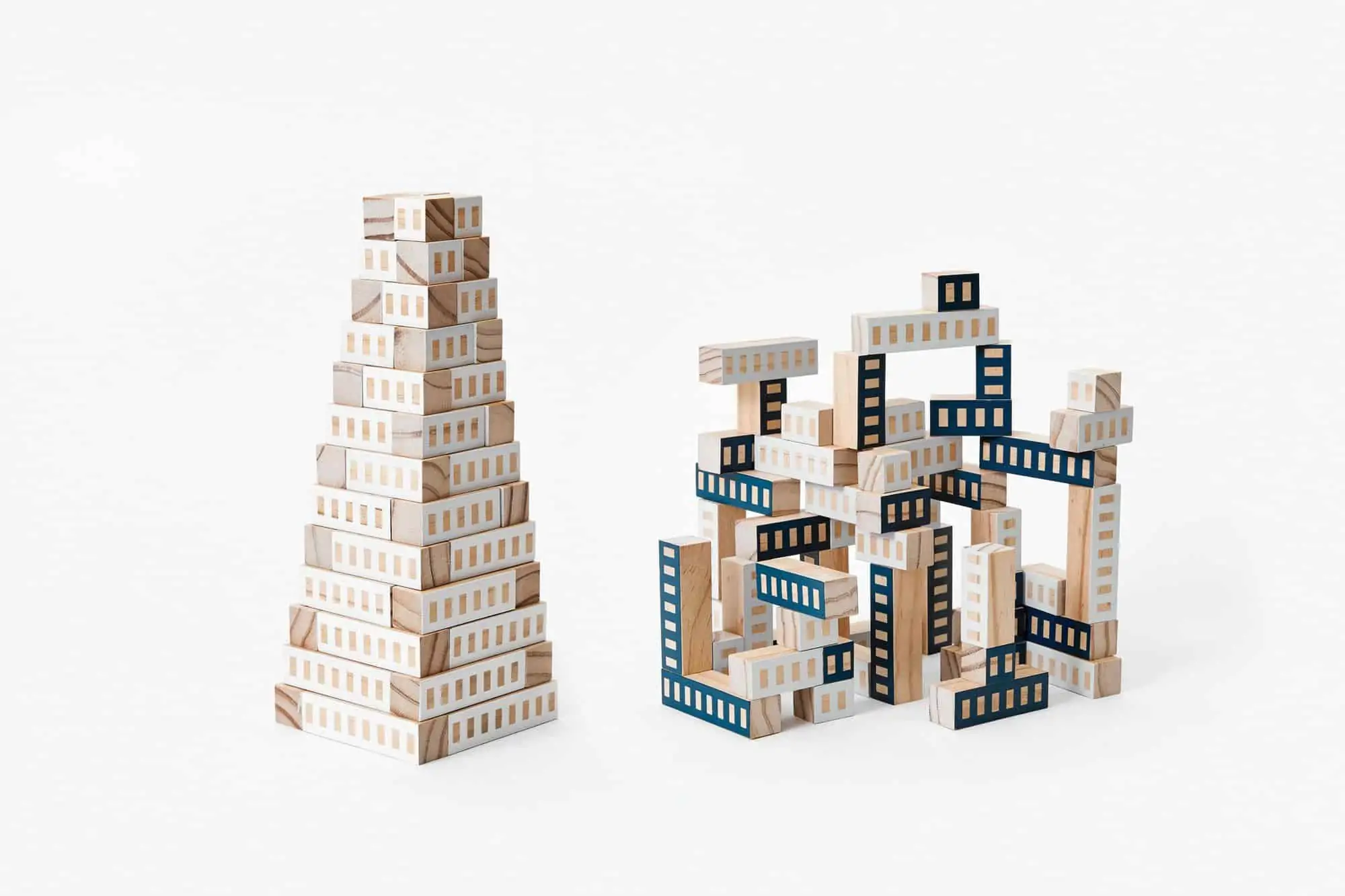 Bauen Sie die Welt nach Ihren eigenen Vorstellungen mit Blockitecture, einem Set von Holzbausteinen im Stadt-Design. Die sechseckigen Blöcke können neben- und aufeinander gestapelt werden, um Türme, Häuser und Städte zu erschaffen.