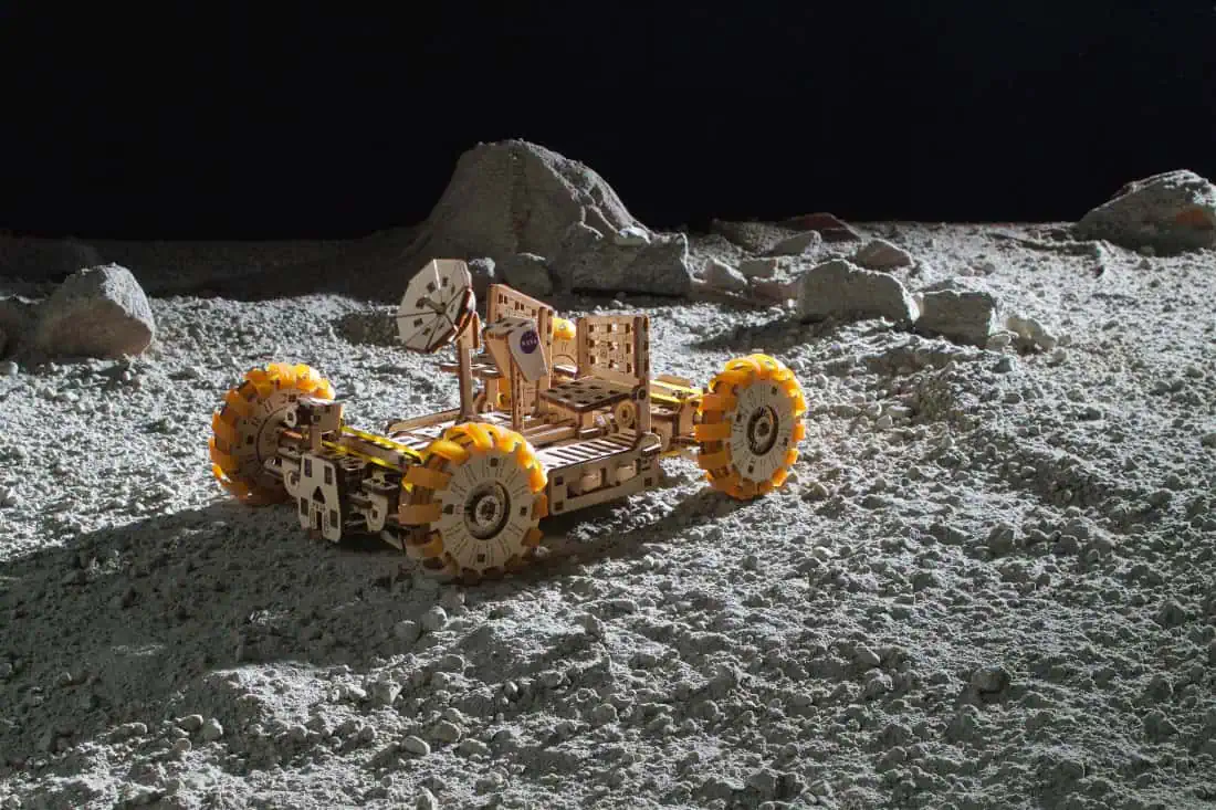 Der Ugears NASA Mondrover ist ein beeindruckendes 3D Holzmodell im Maßstab 1:15, inspiriert vom Lunar Roving Vehicle (LRV). Mit Federantrieb, realistischen Details und cleverer Transformationsmechanik.