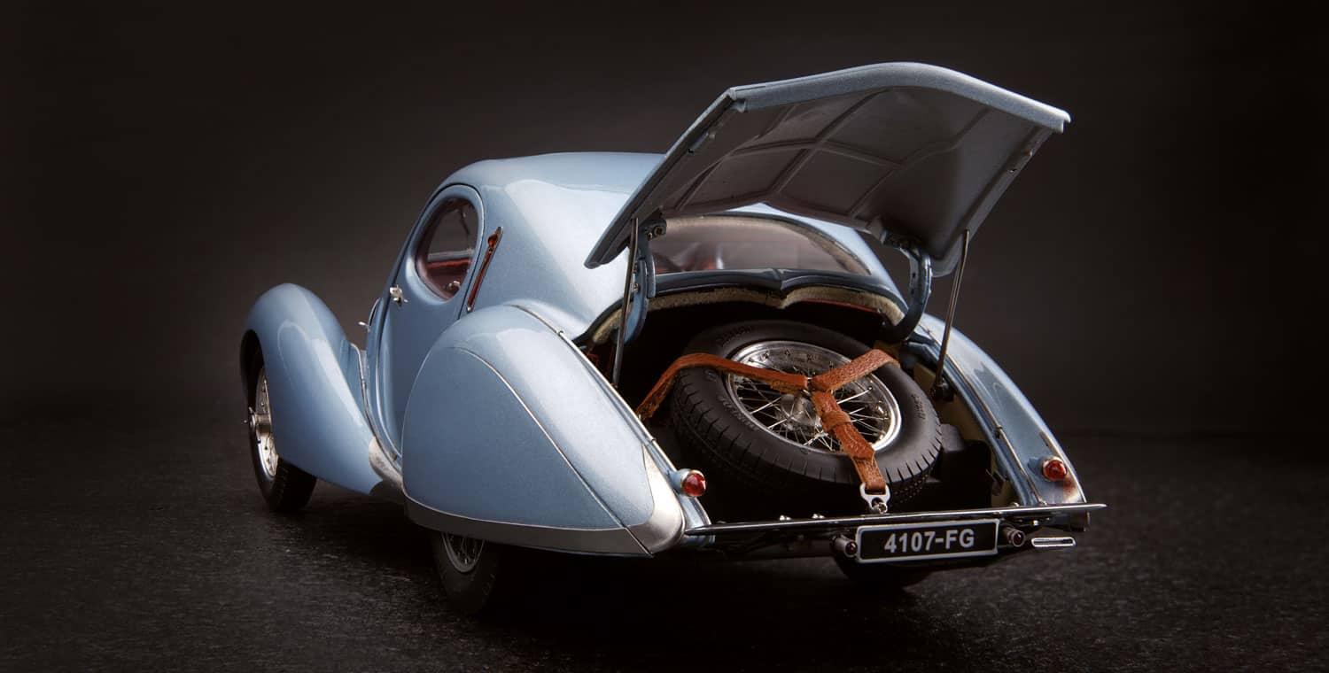 Originalgetreuer Nachbau des Talbot Lago Coupé T150, das mit seiner „Teardrop“-Karosserie elegant wirkt. Seine unübertroffene Ästhetik wurde von den Franzosen Figoni&Falaschi designt und versetzte die Zeitgenossen bei der Präsentation 1937 in Begeisterung.