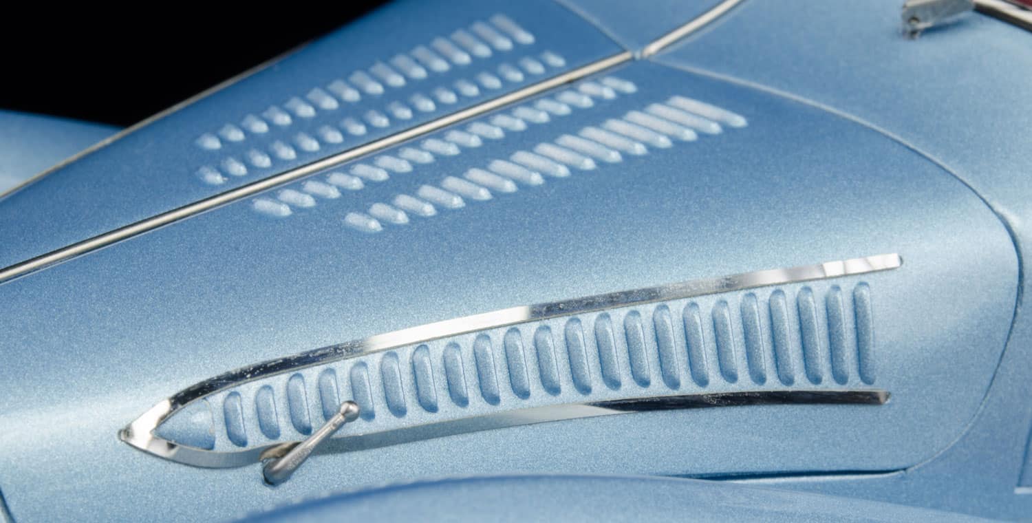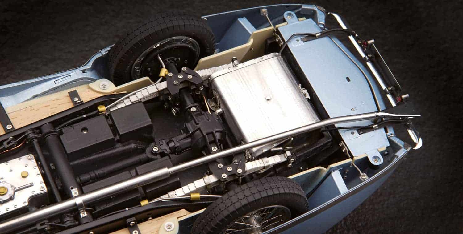 Aufwändig recherchiert unter Verwendung historischer Baupläne und mit umfangreichen Details ist es das perfekte Modell dieses einzigartigen Sportwagens. Präzise ausgearbeitete Rundinstrumente, aufwändig umgesetzte Radaufhängungen und eine Karosserie, unter der es viel zu entdecken gibt, lassen die Herzen von Sportwagenfans höher schlagen.