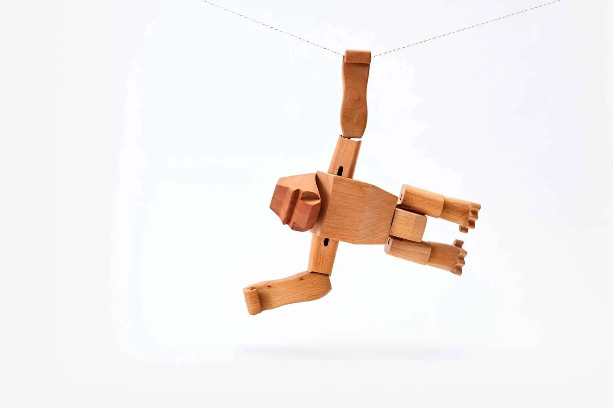 Das flexible und robuste Hartholz-Modell kann verschiedene Posen einnehmen. Die Muskeln und Gelenke werden durch flexibles Gummiband zusammengehalten. Bei angemessener Pflege und sorgsamem Umgang ist Hanno ein langlebiger Begleiter.