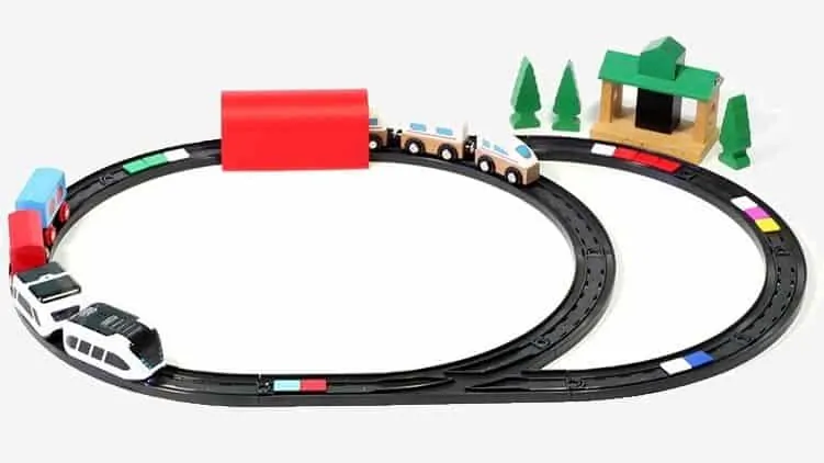 Intelino hat auch dafür gesorgt, dass der Smart Train mit den beliebten, klassischen Holz-Streckenteilen kompatibel ist. Auf speziellen Streckenteilen wie Rampen oder Y-Kreuzungen kann die Kompatibilität zwar eingeschränkt sein, dennoch ist es ein großer Spaß, den Smart Train auf einer klassischen Holzstrecke fahren zu lassen.