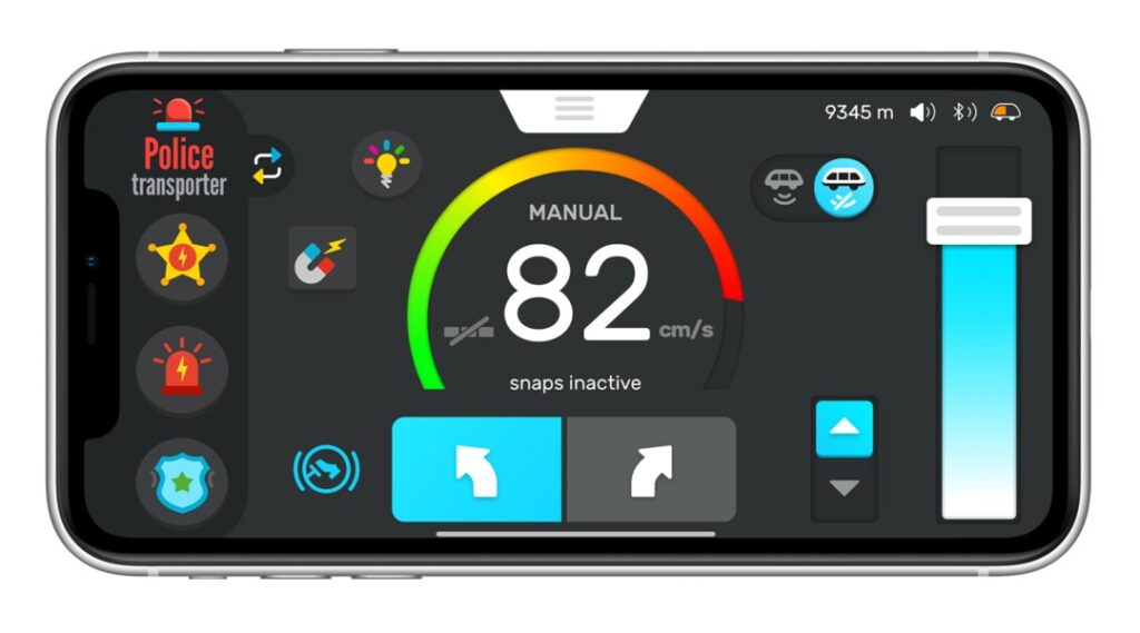 Übernimm die volle Kontrolle über den Zug. Die Aktionsschalter werden im manuellen Modus deaktiviert. Wirf dich selbst mitten ins Geschehen und entfessle den Rennfahrergeist in dir, wenn du den Zug mit einer Höchstgeschwindigkeit von bis zu 100 cm/sec fahren lässt.