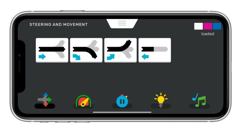 Die farbigen LED Frontscheinwerfer können mit der intelino App gesteuert werden.