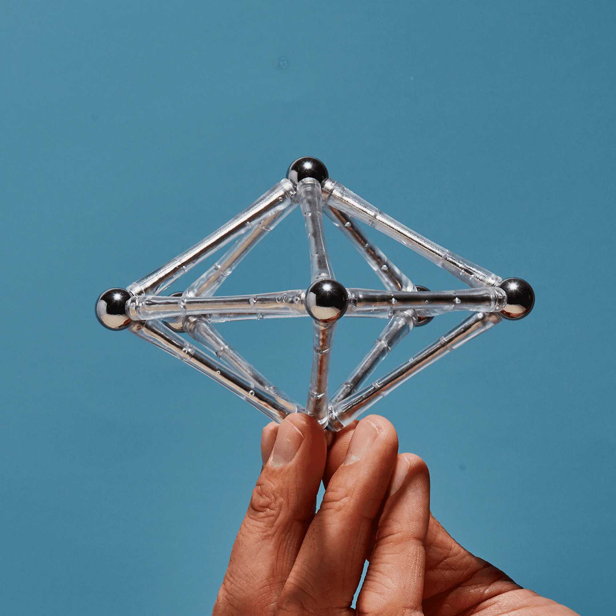 Spokes kombiniert magnetische, stahlverstärkte Stäbe mit Metallkugeln als Konnektoren. So entstehen Säulen, Brücken, Gitter – ideal für ruhige, haptische Pausen am Schreibtisch. Das leise Spielgefühl unterstützt Konzentration, Feinmotorik und kleine Kreativ-Sprints im Alltag.