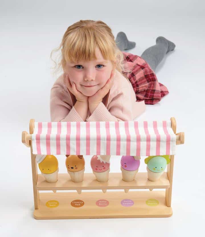 Wecke den Eisverkäufer in dir mit diesem Rollenspiel-Set aus Holz. 5 farbige Eiskugeln im Hörnchen mit freundlichen Gesichtern sorgen für gute Laune an heißen Tagen.