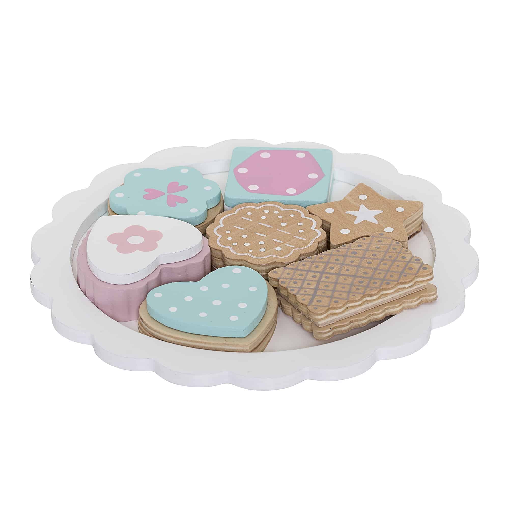 Das Spielset mit Holzgebäck ermuntert zum Anrichten sowie Servieren und lässt Raum für lustige Rollenspiele.