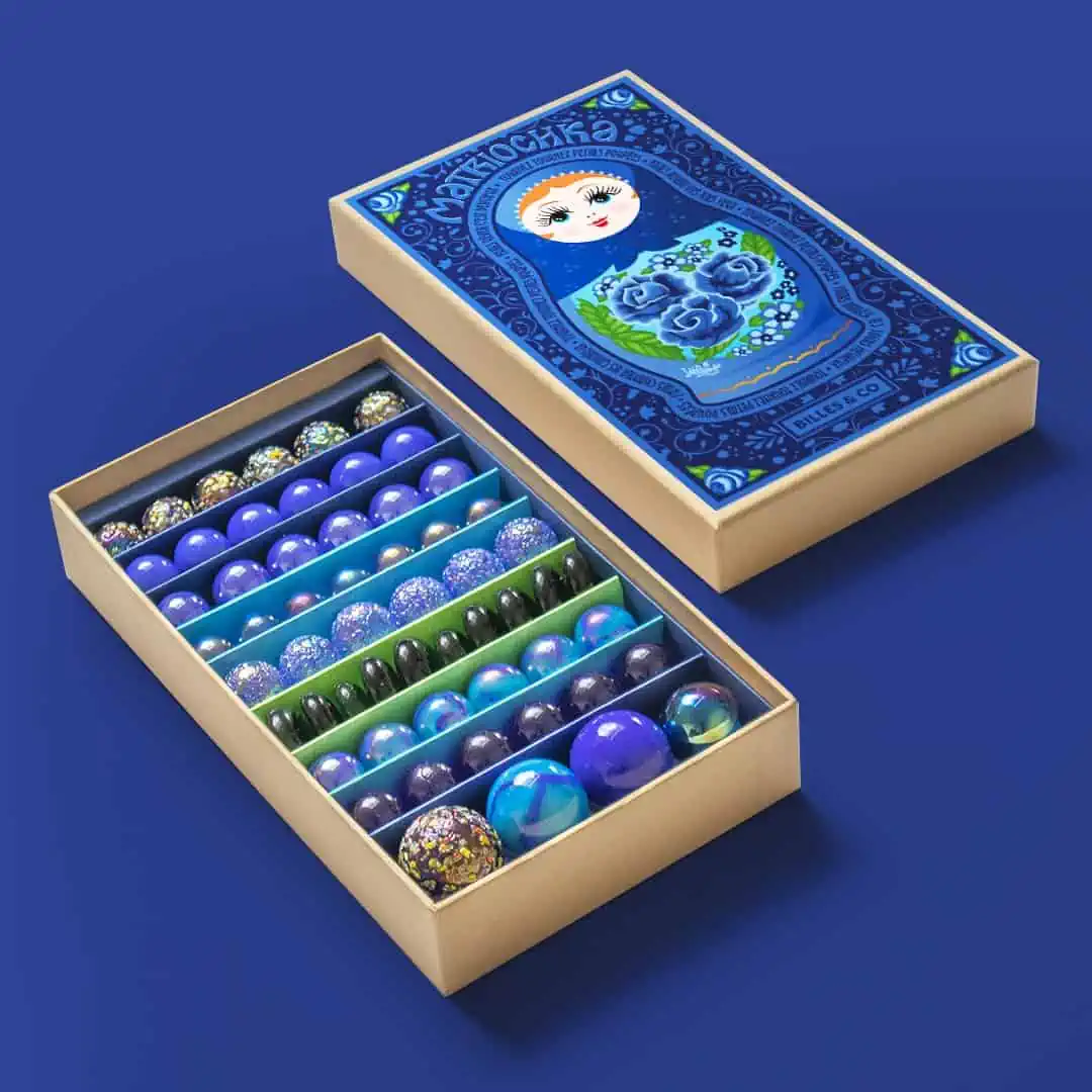 Was kann es an Murmeln schon geben, was so besonders ist. Ein paar Glaskugeln, die du rollen, schieben oder werfen kannst, das klingt nicht so wirklich weltbewegend. Aber wenn du so denkst, kennst du die Murmelsets von Billes & Co noch nicht! Die zeigen dir nämlich, dass Murmeln auch wunderschön sein können. Es müssen keine einfallslosen Glaskugeln sein, die in einem Plastiknetz präsentiert werden. Sie können verspielte Farben aufweisen, die dich zum Träumen anregen, wie die Blau- und Grüntöne in der Box Matroschka Yelena.