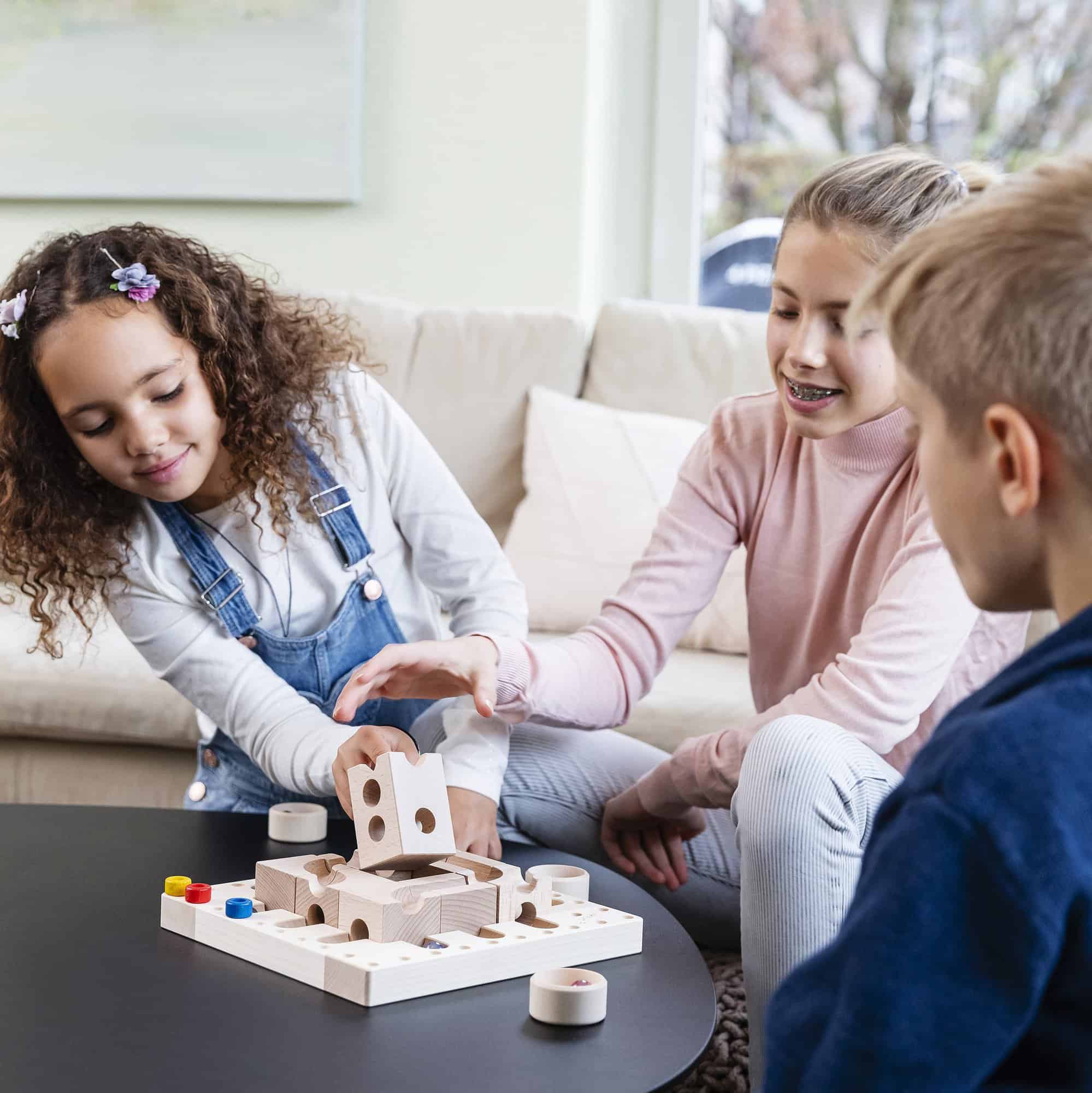 Beim Konstruieren wachsen räumliches Vorstellungsvermögen, Feinmotorik und Problemlösen. Das Wechselspiel aus sichtbaren Rillen und unsichtbaren Tunnels trainiert Planung, Sequenzieren und iteratives Verbessern.