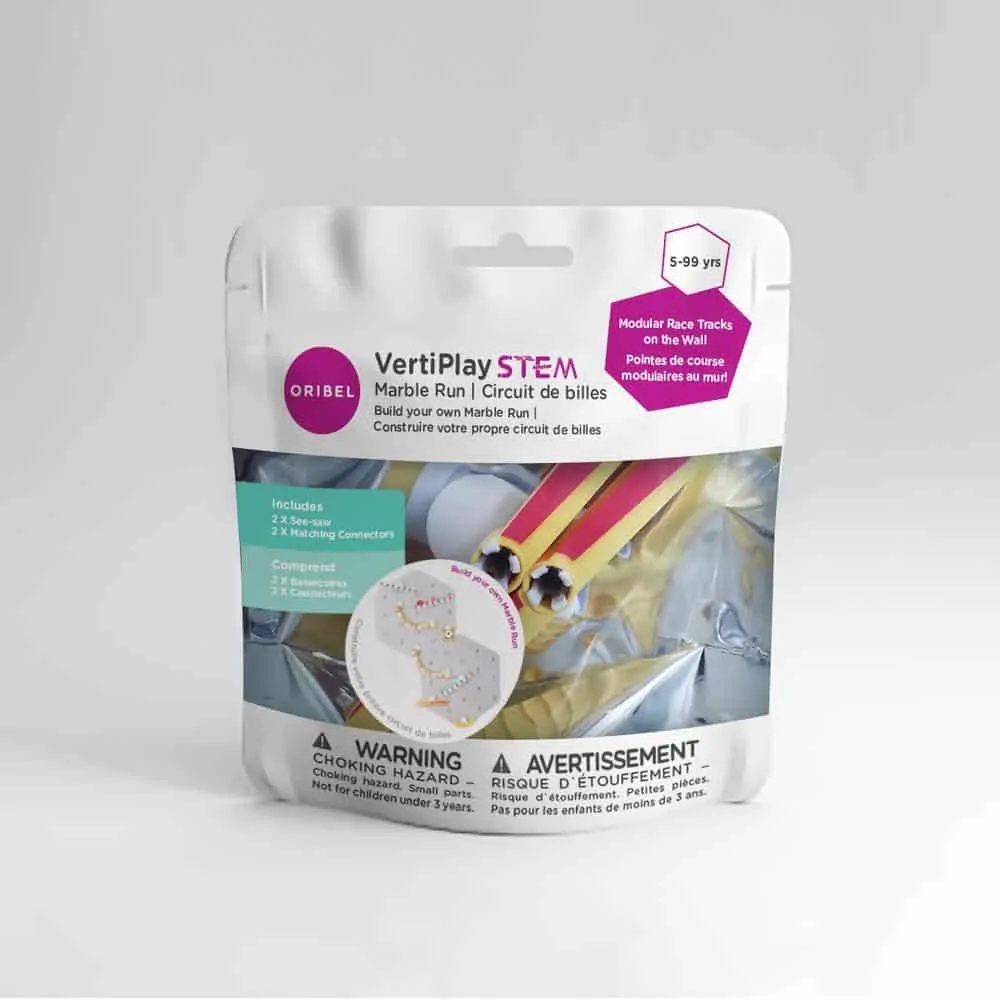 Dieses Set enthält zwei Wippen und zwei Verbindungsstücke für die modulare Wandkugelbahn.