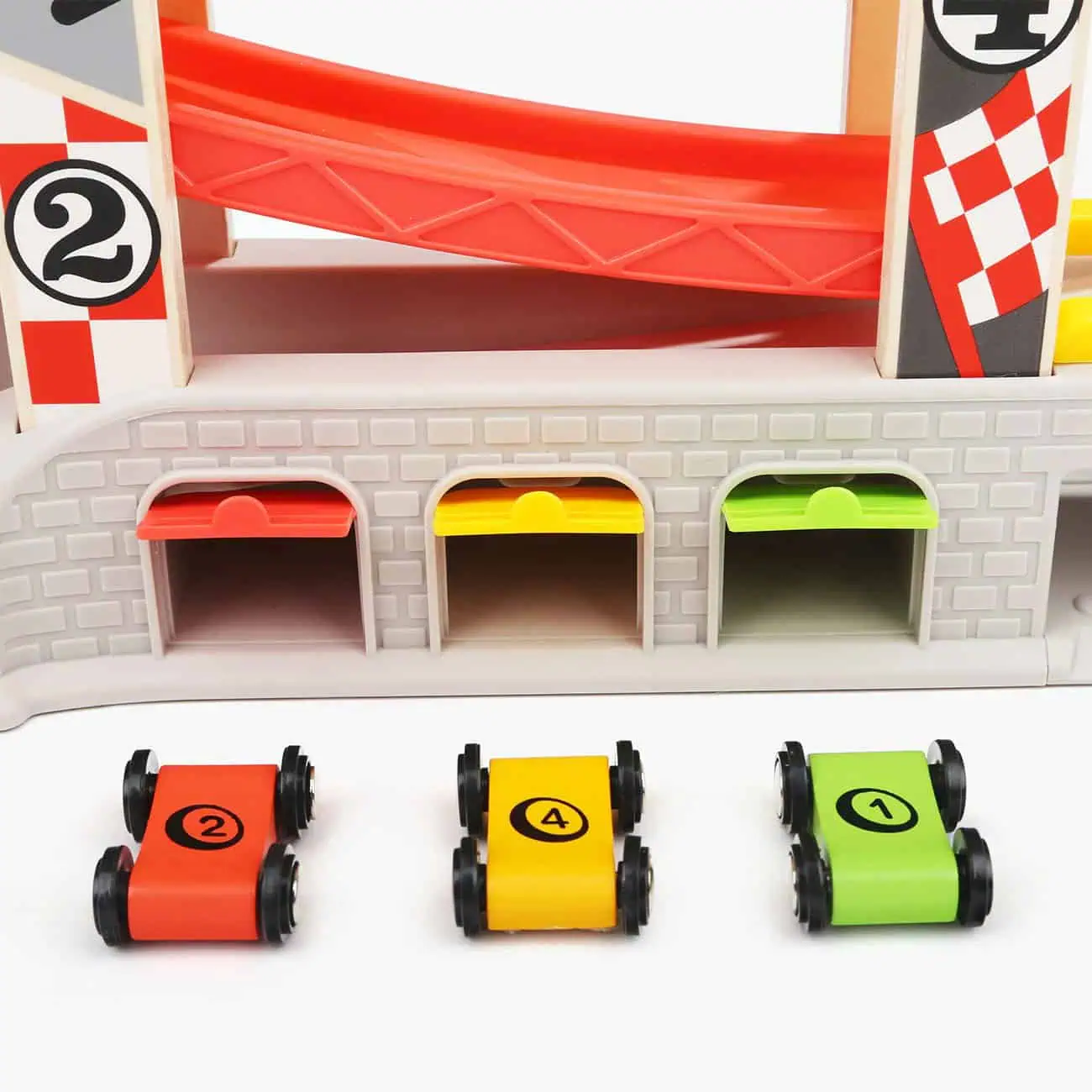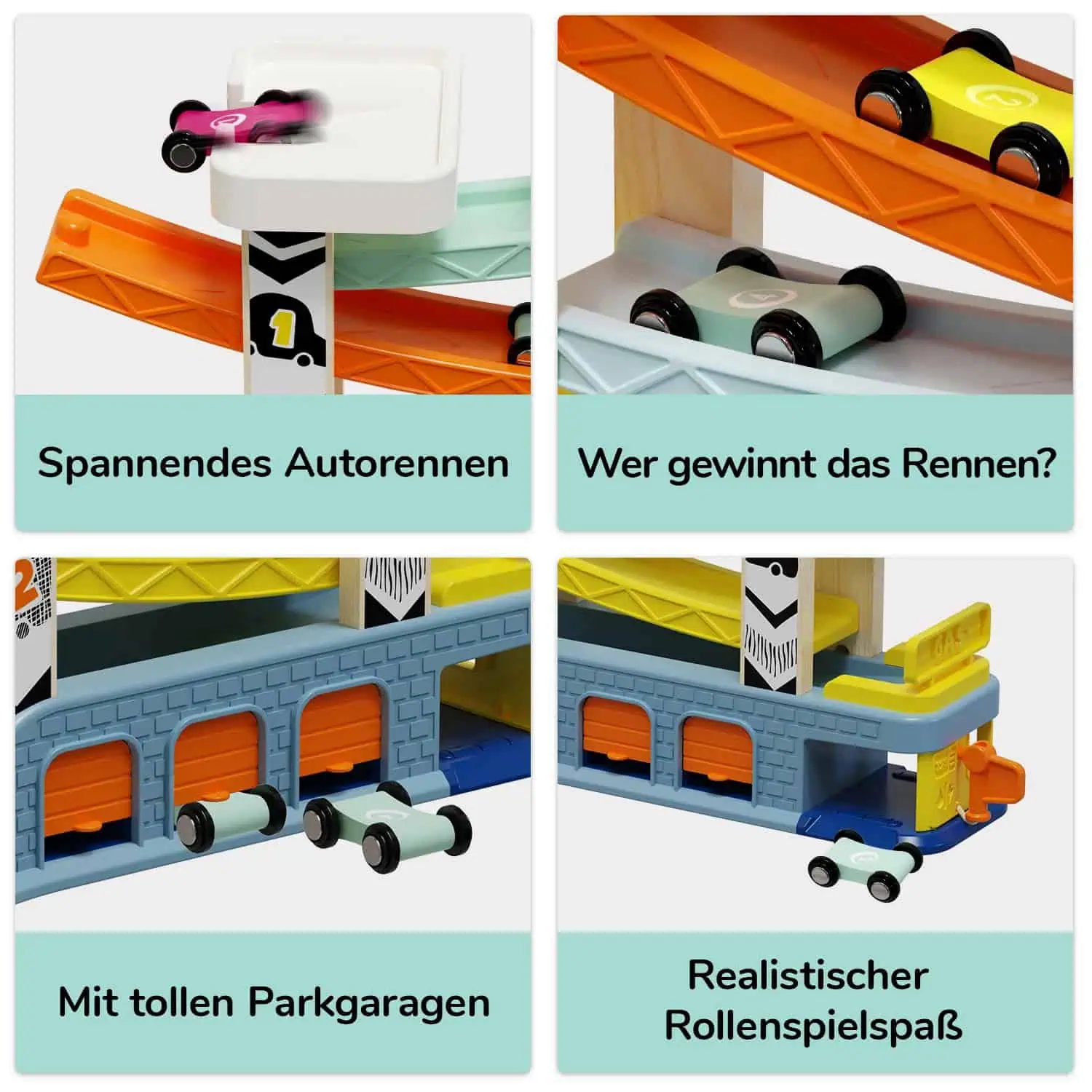TOPBRIGHT Auto Rennbahn – Holz-Rennstrecke mit 4 Autos