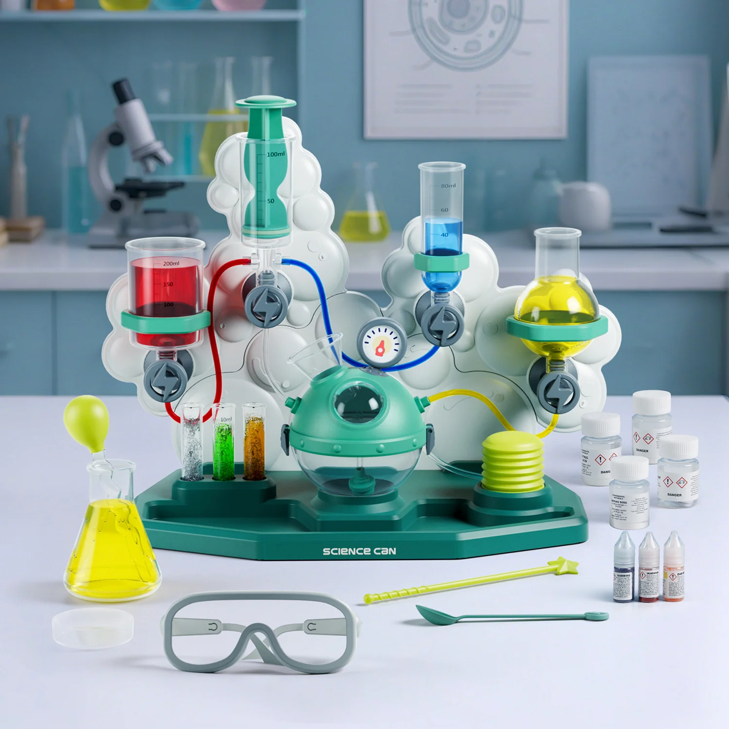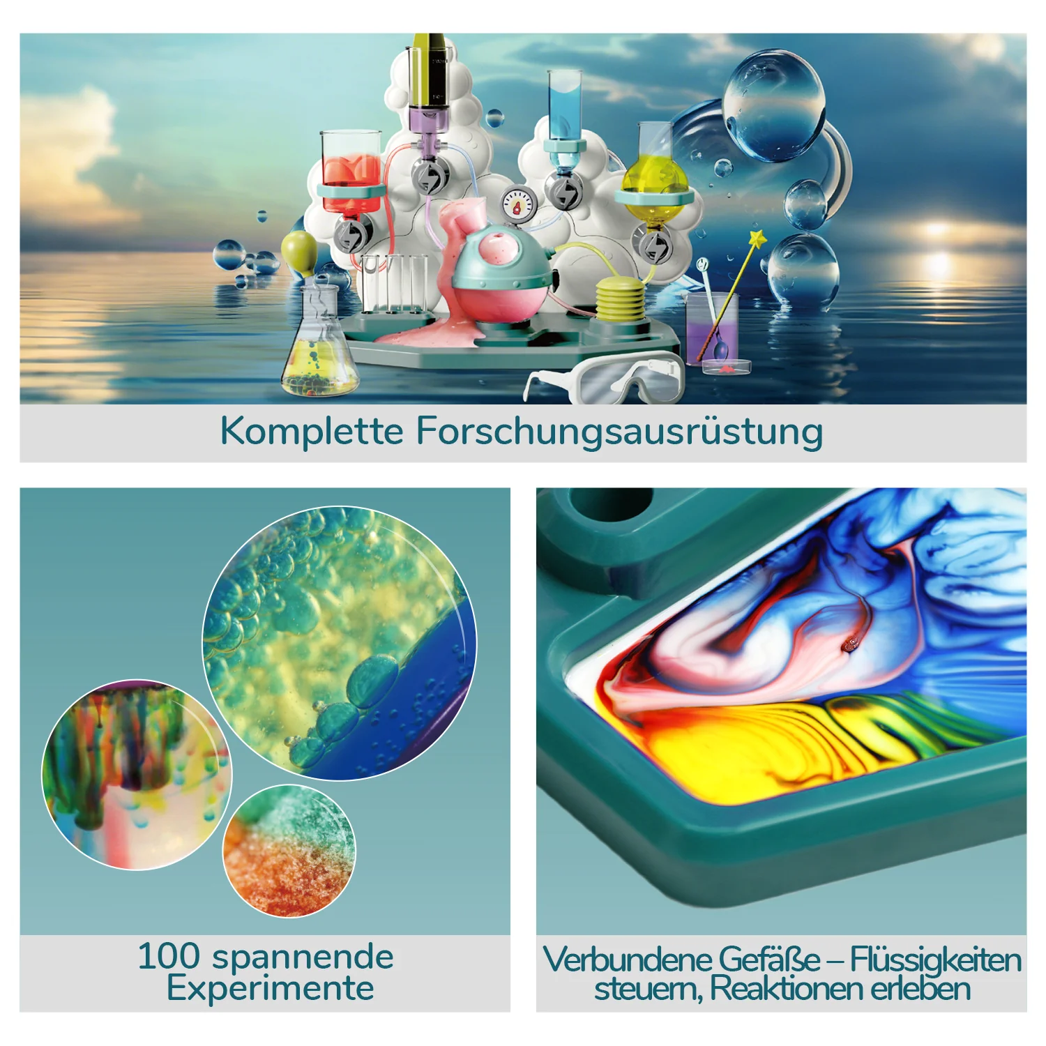 Chemistry Lab Fusion bringt 100+ Experimente nach Hause: verbundene Gefäße, Pumpen & Laborwerkzeug für Farbreaktionen, Schaum-Vulkane & Reaktionsketten – ab 8 Jahren.